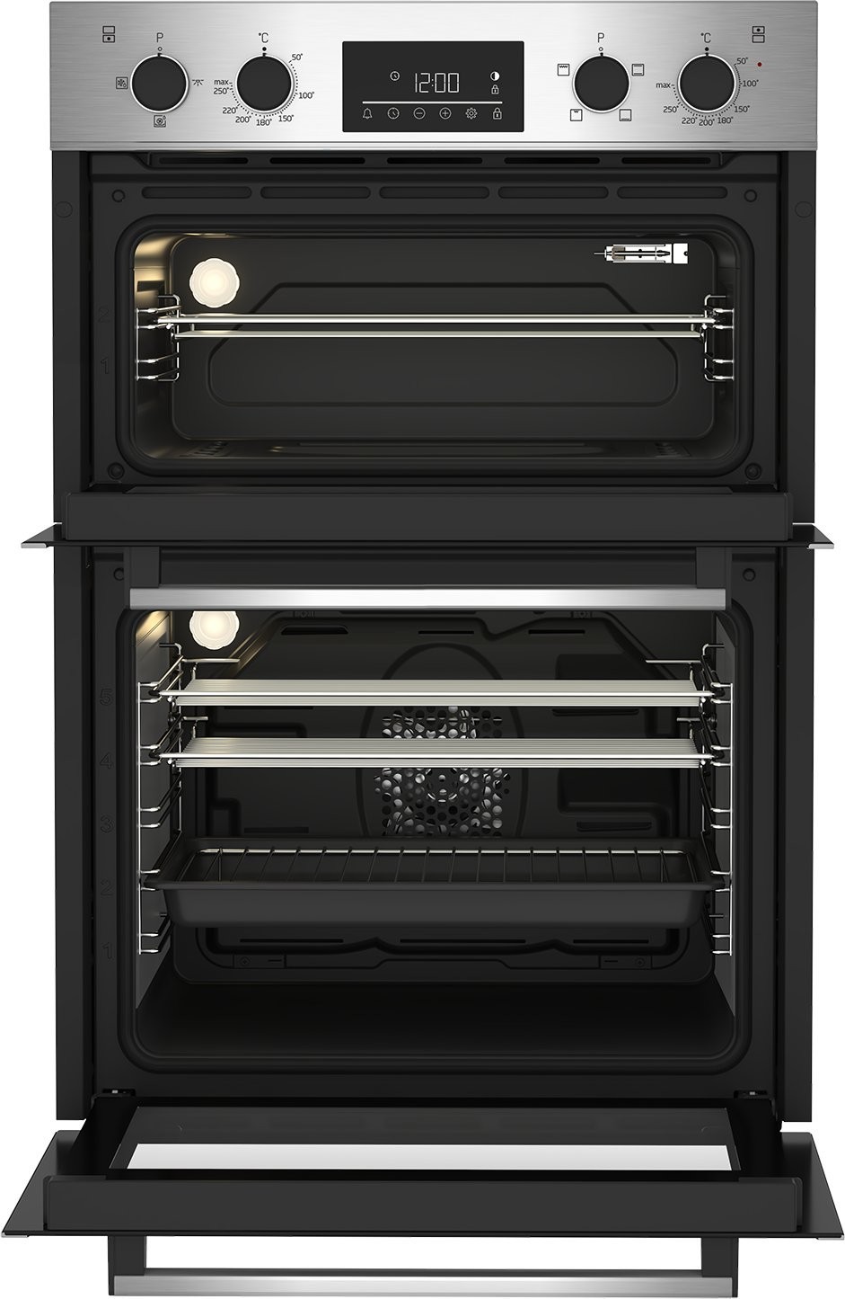 Beko's CDFY22309X built in double oven combines modern technoloy and quality with practical reliability, providing a versatile cooking appliance. With a large fan oven, a smaller conventional oven (with grill), and plenty of innovative cleaning technologies, this oven promises to enhance and simplifying your cooking.