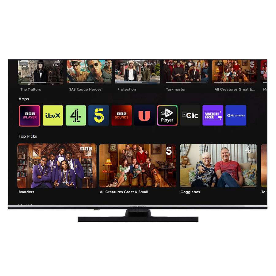 Mitchell & Brown's JB-55B1811 comes with built in WiFi and supports popular streaming services like Netflix, Amazon Prime Video, Disney+, and YouTube. It features screen mirroring via Wireless Display/Miracast and works with voice assistants like Alexa and Google Home. With three HDMI ports, two USB ports, and Bluetooth audio link, connecting your devices is easy, seamless, and convenient.