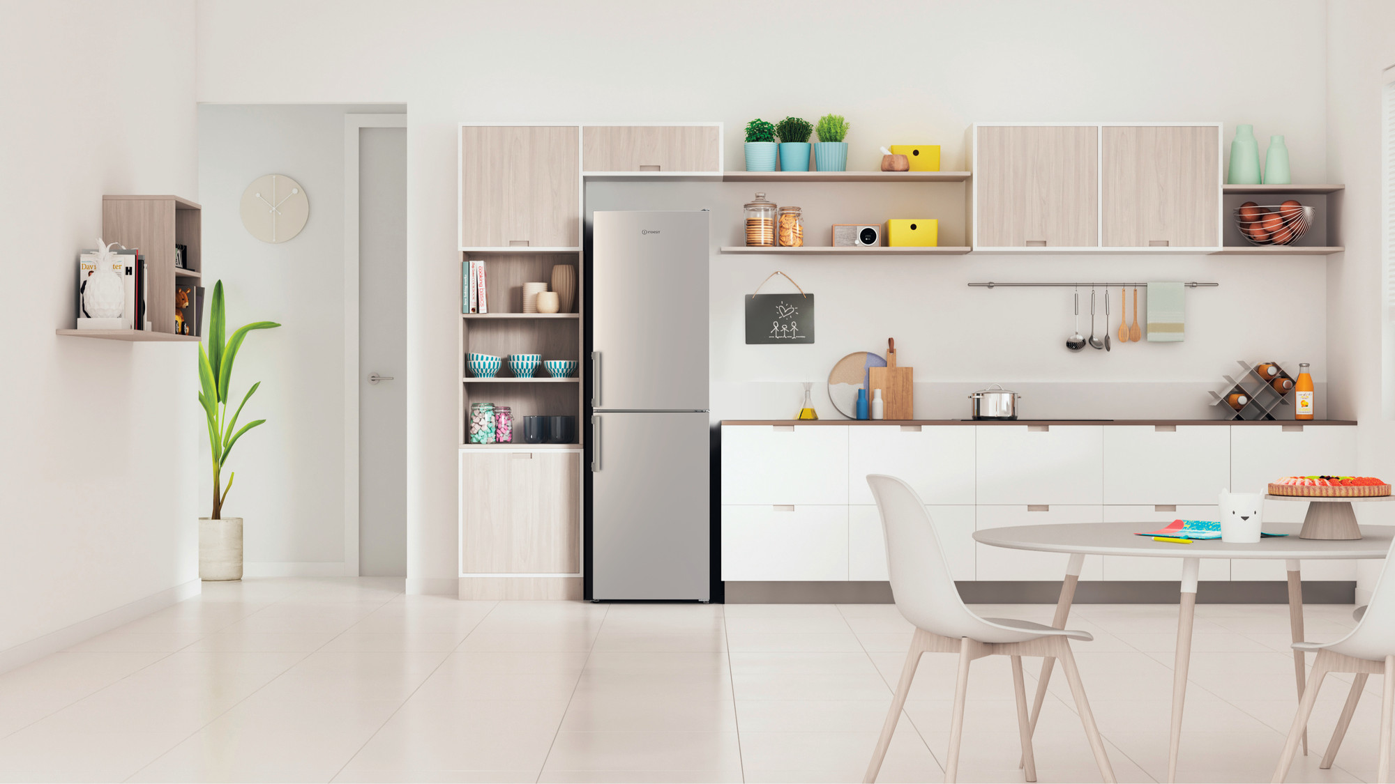 This 183cm tall fridge freezer provides a total volume of 286 litres, with 167 litres dedicated to the fridge and 119 litres to the freezer. Indesit's Open Space Freezer design allows for easy storage of larger items by simply removing the upper drawers, resulting in greater flexibility and convenience. The fridge includes four shelves, two of which are adjustable, and a convenient bottle balcony for safe storage.