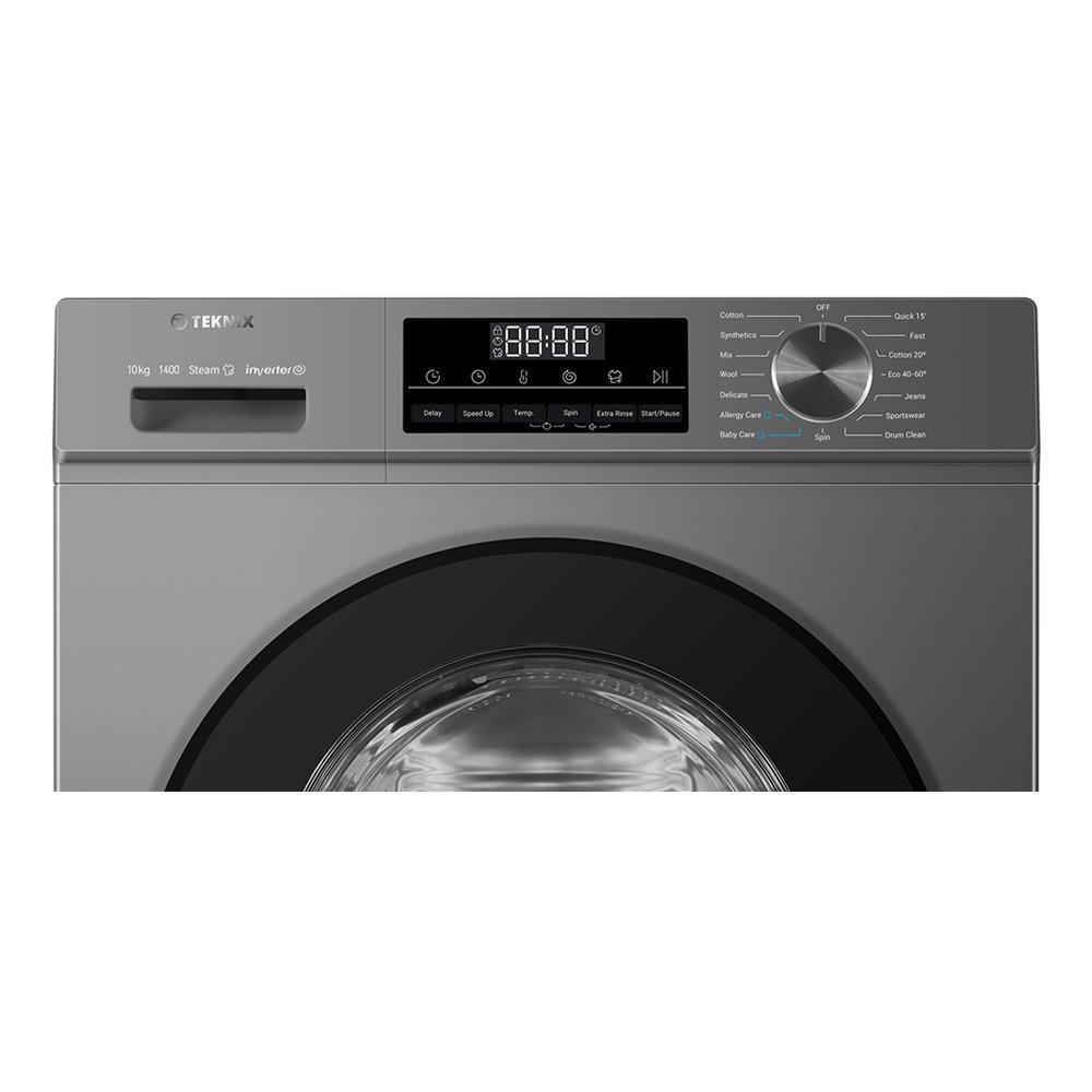 Teknix's TK3W1014XS washing machine easily meets the laundry needs of larger households with its ample capacity and wide range of versatile programs. Finished in dark silver, the TK3W1014XS combines efficiency and ease of use, making it an excellent choice for those looking to upgrade their household laundry capabilities.