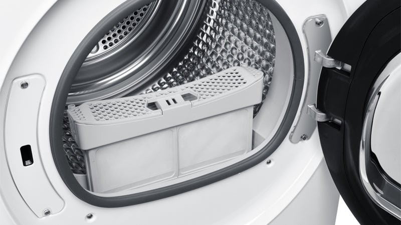 Featuring a unique 3 in 1 filter system, the dryer precisely captures fluff and lint fibres, ensuring maintenance is both easy and straightforward. Haier's triple layer filter is super easy to reach and clean, and ensures peak performance by preventing residue build up.