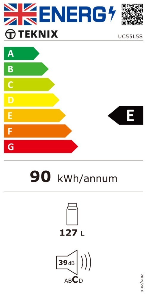 Teknix's UC55L5S under counter larder fridge, has a whopping 127 litres net capacity. This fridge is perfect for smaller kitchens, providing ample space for your fresh foods, all in a compact, space saving form.