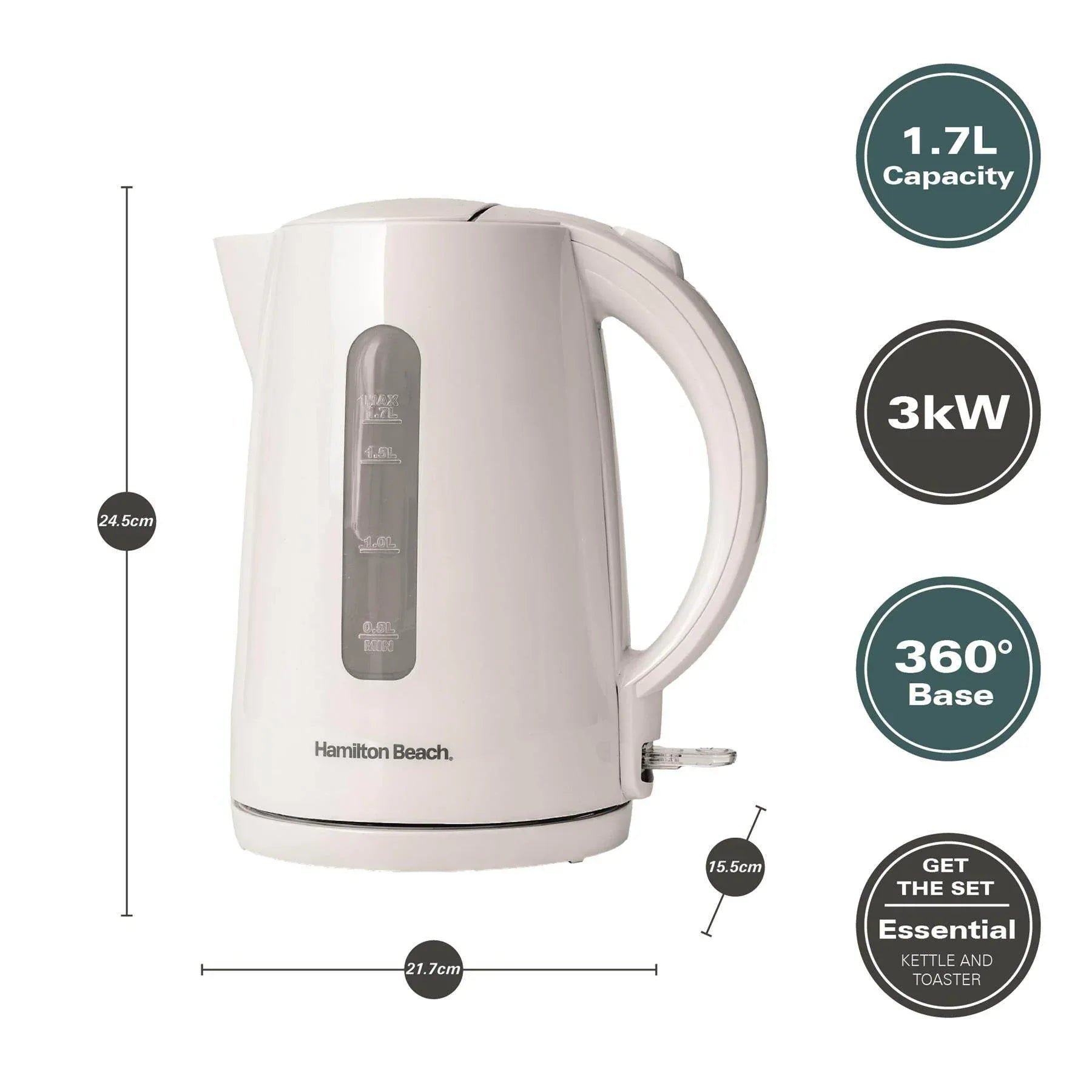 Hamilton Beach HBK1301W 1.7L White Rapid Boil Kettle