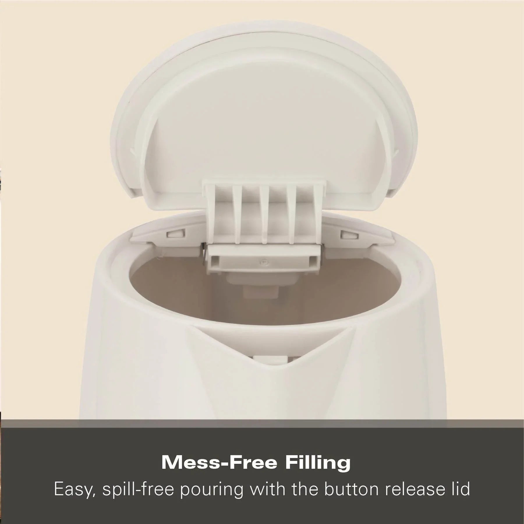 A clear water indicator window allows you to measure precisely, while the button-release lid ensures easy refilling. Equipped with automatic shut-off and boil-dry protection, the kettle provides reliable safety during use.