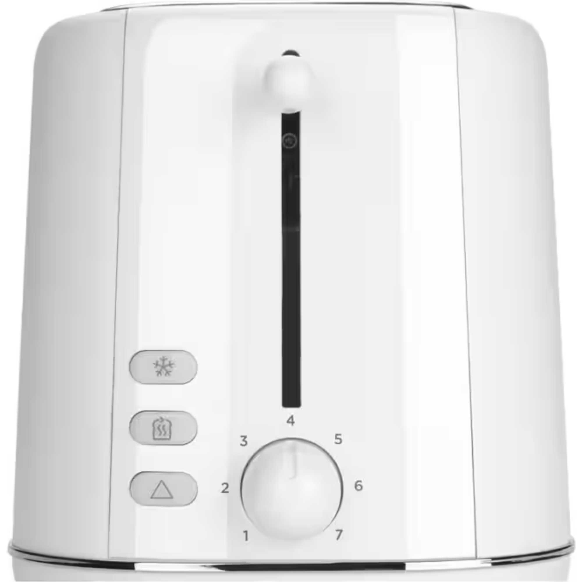 Toast straight from frozen or warm things up without overcooking. A removable crumb tray keeps your countertop tidy and makes cleaning up quick and hassle-free. Finished in classic white with refined detailing, this toaster fits effortlessly into any kitchen.