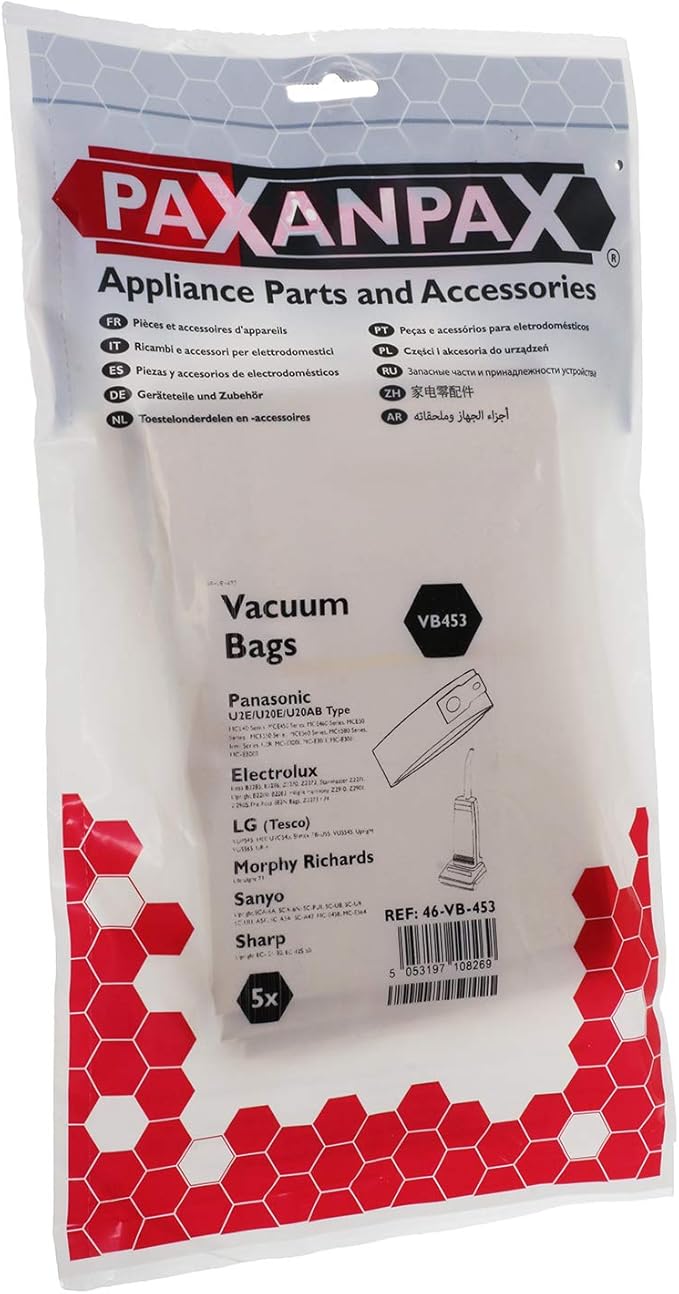 The Paxanpax 46VB453 compatible vacuum bags are designed for select Panasonic and Sharp models, and offer a convenient solution for everyday cleaning.
