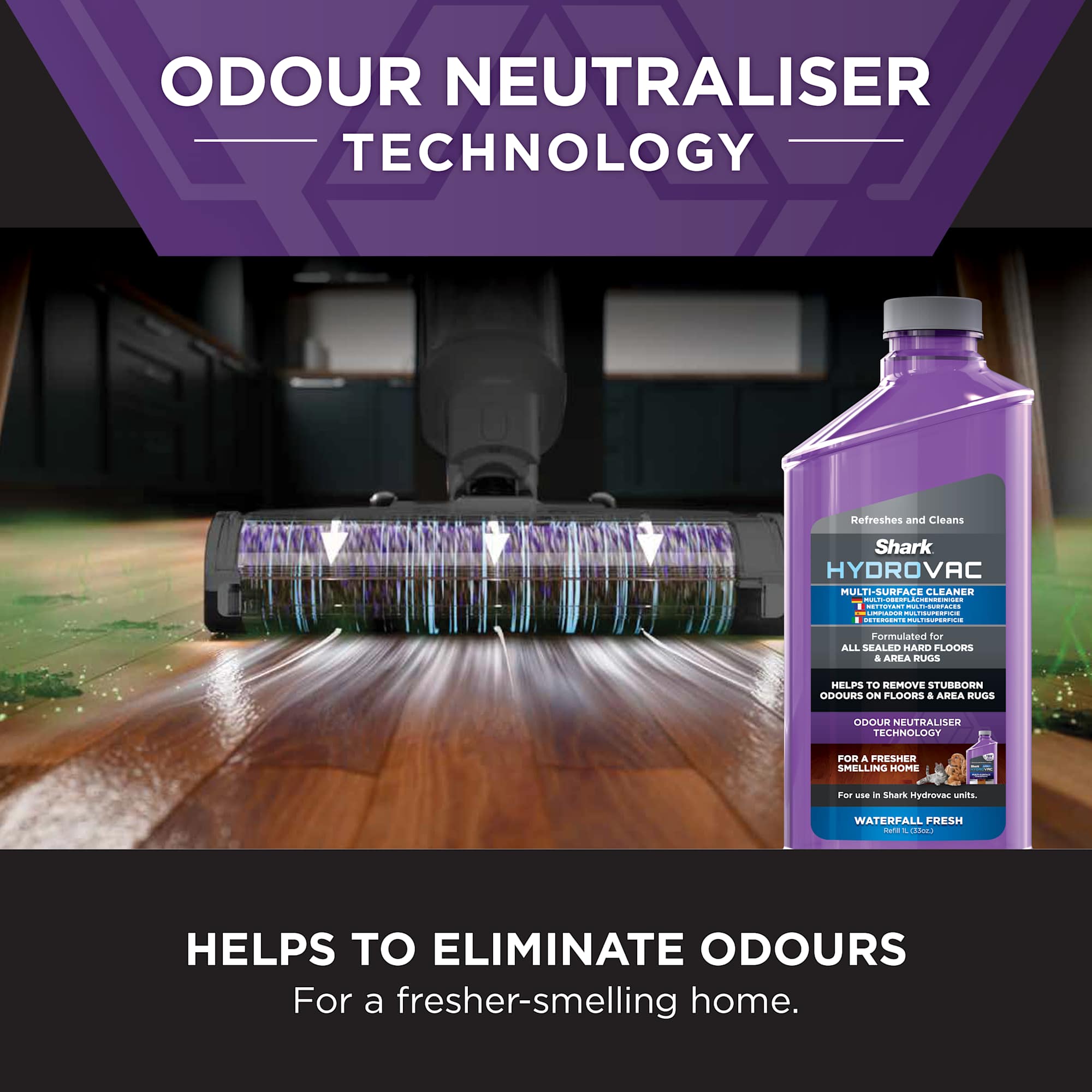 The included multi-surface cleaning solution with odour neutraliser technology helps eliminate persistent odours and reduce the likelihood of odour return. An antimicrobial brush-roll is designed to resist odour and bacterial growth between uses, supported by a continuous self-cleaning system that helps prevent dirt from being redeposited onto floors.