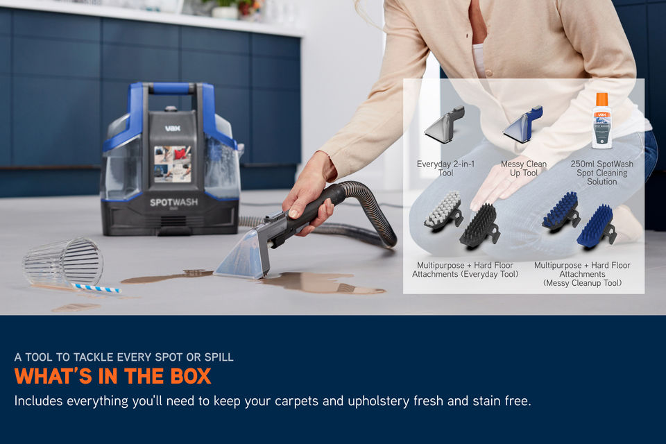 The Vax CDCW-CSXA SpotWash duo spot cleaner is a powerful and versatile cleaning solution designed to handle everything from everyday spills to tougher messes like pet accidents or muddy footprints. With dual cleaning tools, multi-surface attachments, and a self-cleaning function, it offers an efficient, hygienic way to keep your home looking fresh.