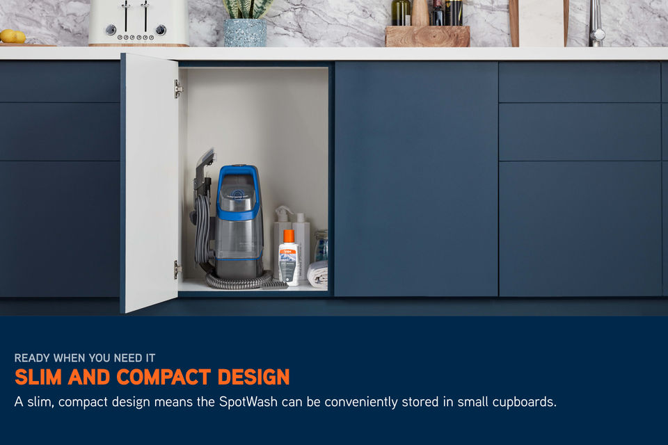 With a slimline and portable build, the SpotWash Duo is easy to carry from room to room or out to your car. And when you’re done, it tucks neatly into any cupboard or storage space.