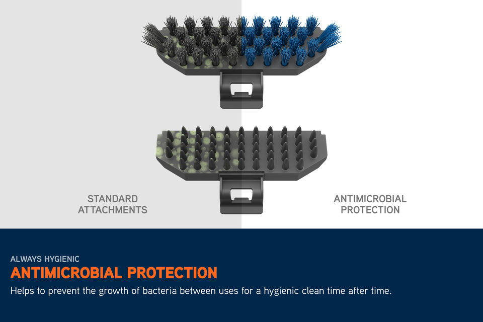 The cleaning tools are treated with antimicrobial bristles to help prevent bacteria buildup between uses. Plus, having separate tools for clean and messy jobs helps avoid cross contamination in your home.
