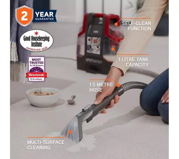 With 380W of power and strong suction performance, this SpotWash quickly lifts dirt and marks from a variety of surfaces. Whether tackling accidental spills, high-traffic areas or pet mess, it is designed to deliver reliable, thorough results.