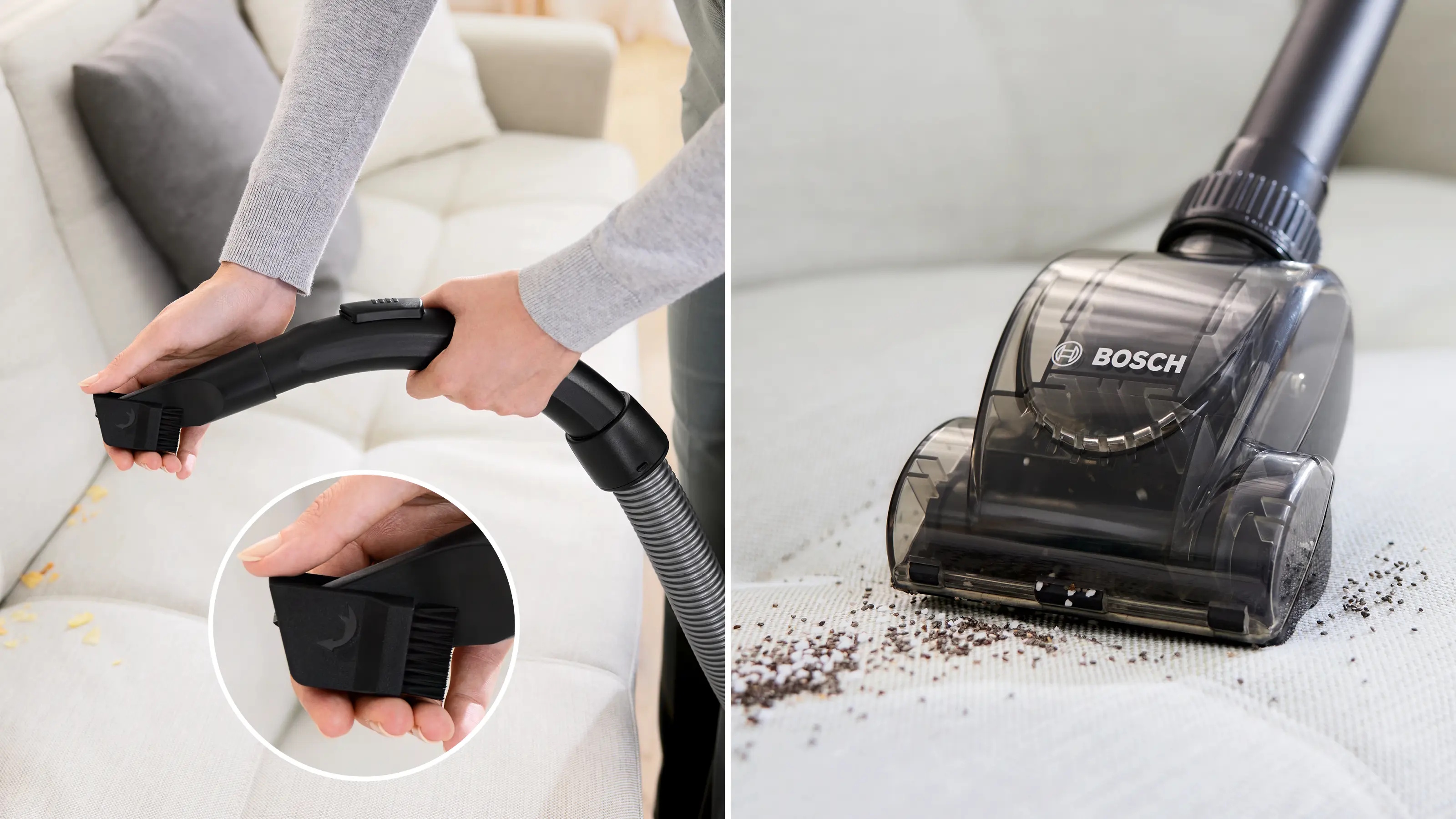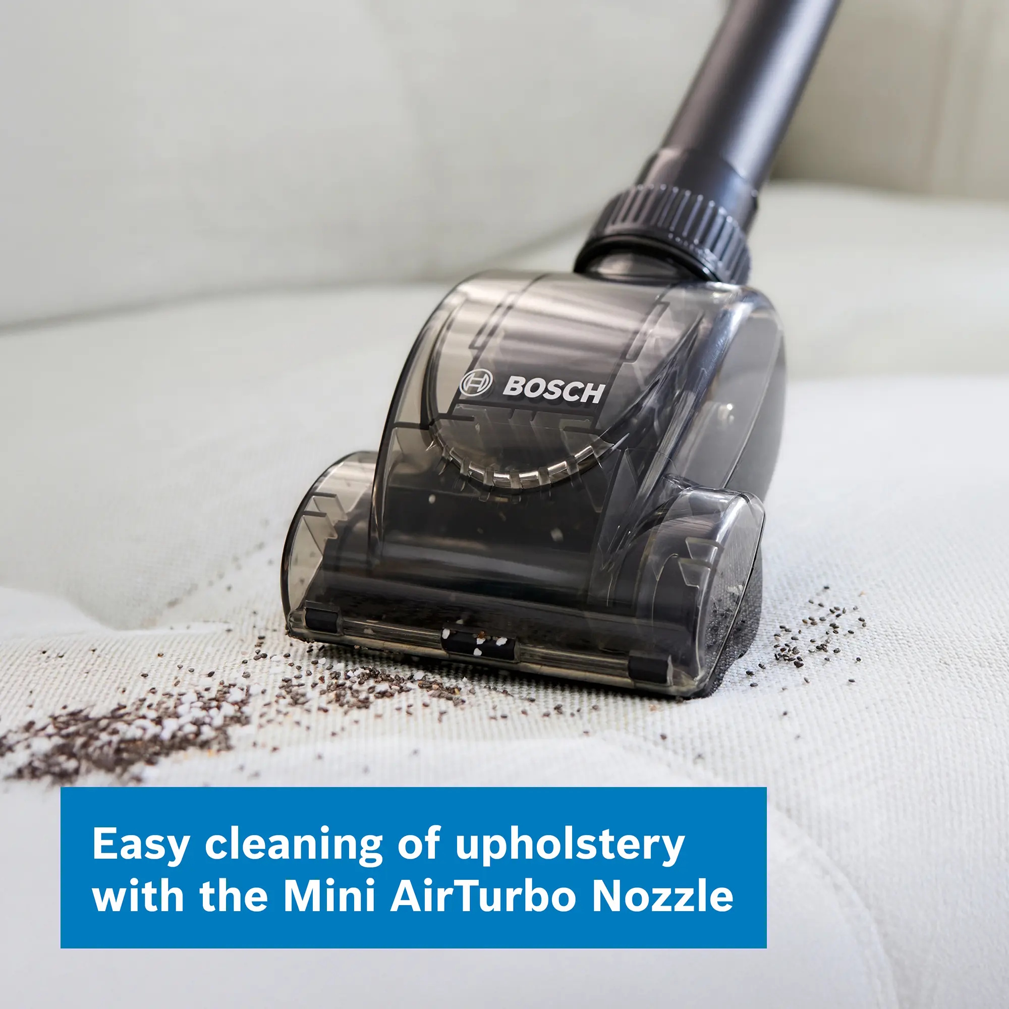 Supplied with a range of useful accessories, including a Mini AirTurbo nozzle, this vacuum cleaner is well-equipped for a variety of tasks. It efficiently removes dust, debris, and pet hair from carpets, upholstery, and hard to reach areas.