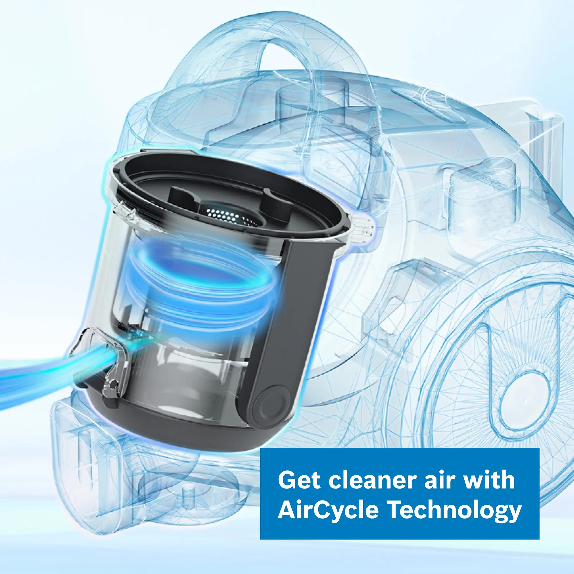 Featuring Bosch’s AirCycle Technology, this model effectively separates dust from airflow for consistent cleaning results. The EPA H12 filter helps capture fine particles, contributing to a cleaner and more hygienic home environment.
