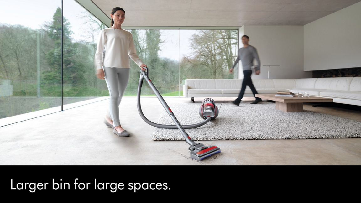 Dyson’s Ball™ technology allows for smooth steering around furniture and into tight spaces. If accidentally knocked over, the vacuum self-rights automatically. The large 1.5 litre bin enables longer cleaning sessions, while hygienic bin emptying drives out debris in one action, so there is no need to touch the dirt.