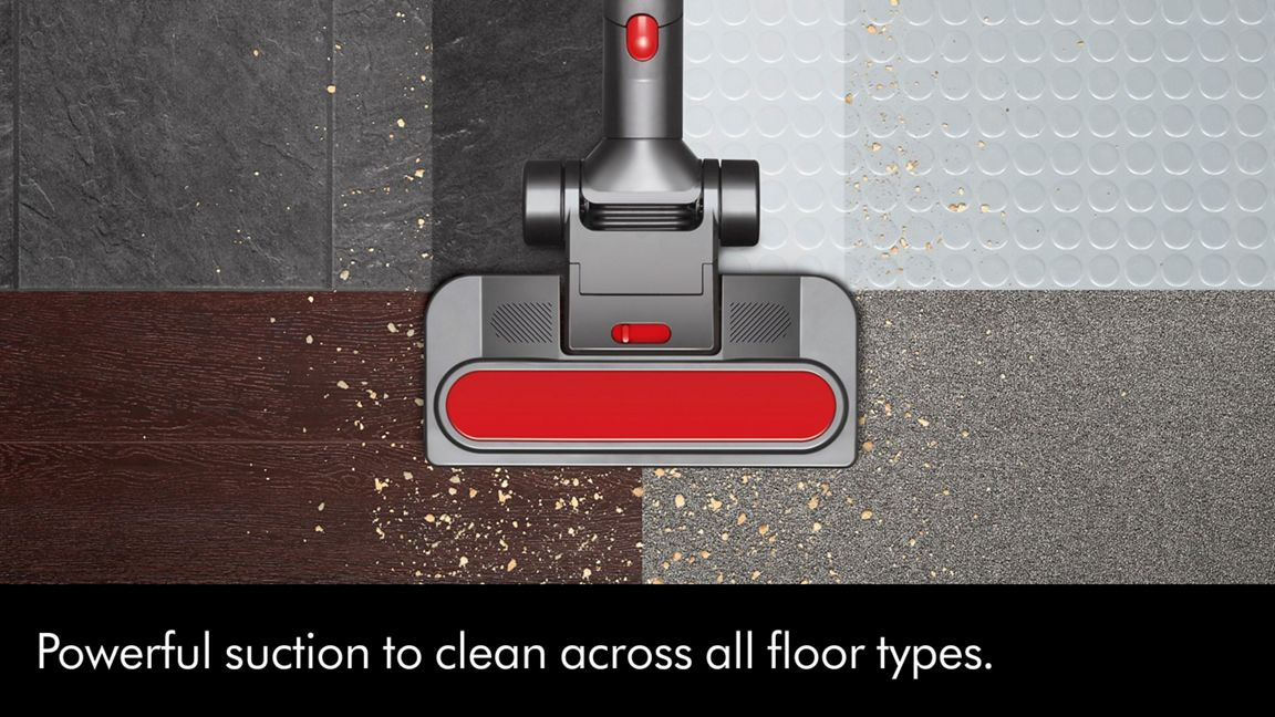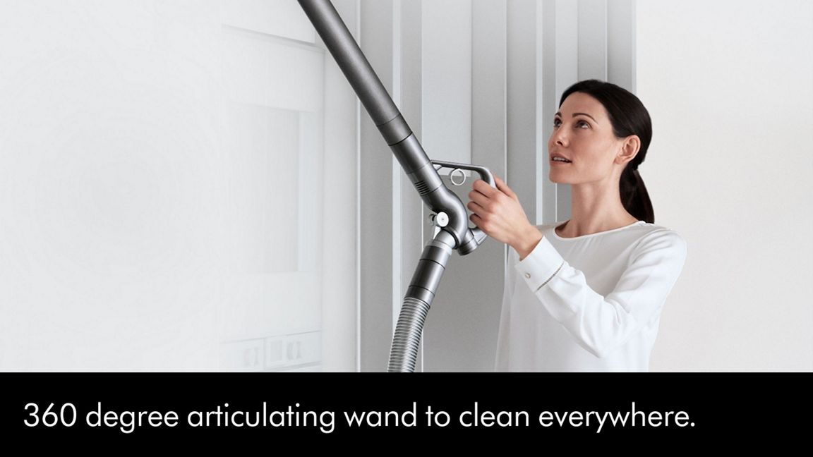 Equipped with a Dyson Pneumatic cleaner head, the vacuum automatically adjusts to seal in suction on carpets and hard floors alike. Powered by 2 Tier Radial™ cyclones, it captures fine dust and debris efficiently without loss of suction. With 170 AW of suction power in Powerful mode, it is designed to handle everything from embedded dirt to pet hair with ease.