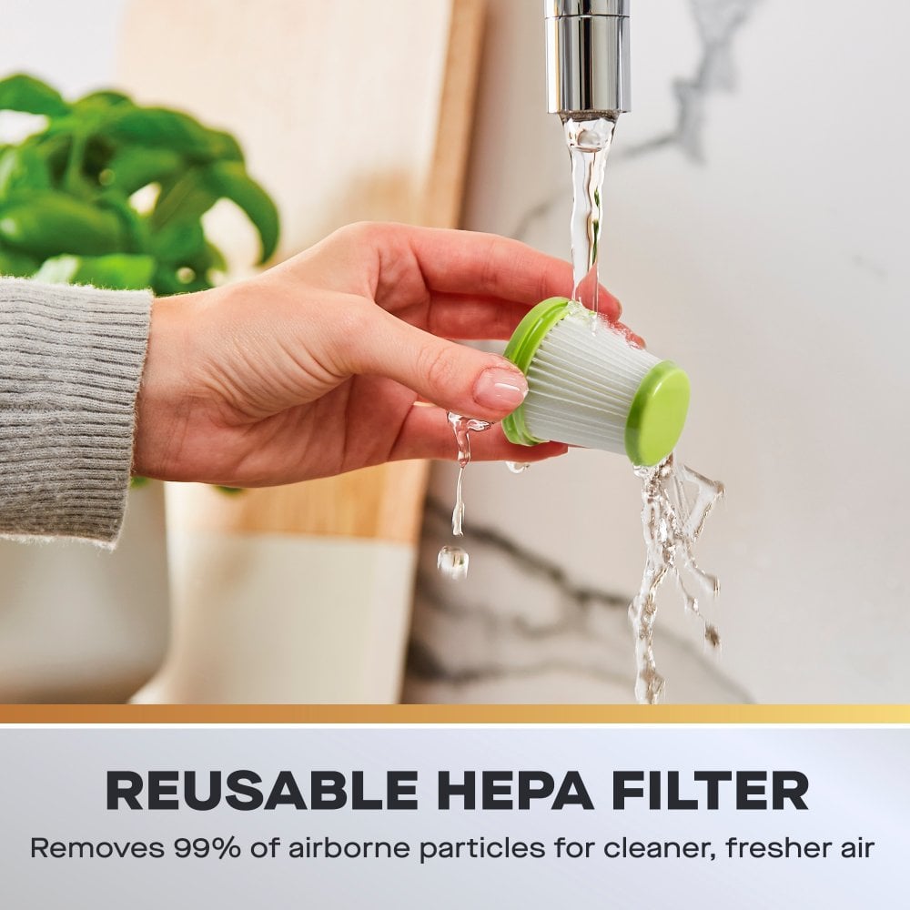 Designed with a washable HEPA filter, the compact pro captures fine dust, allergens and airborne particles, contributing to a cleaner and healthier home environment. Easy to remove and rinse, the filter ensures long-term performance with minimal maintenance.