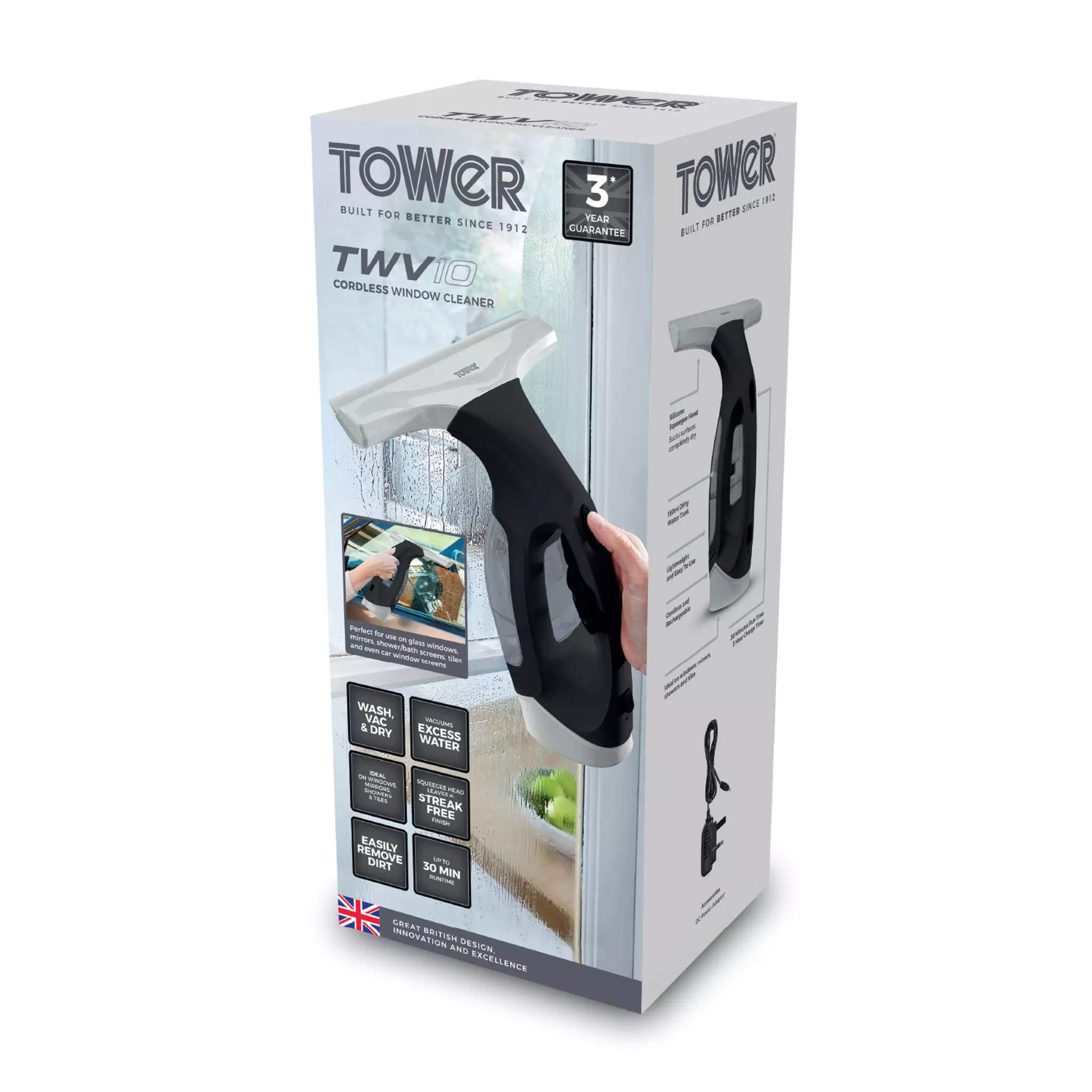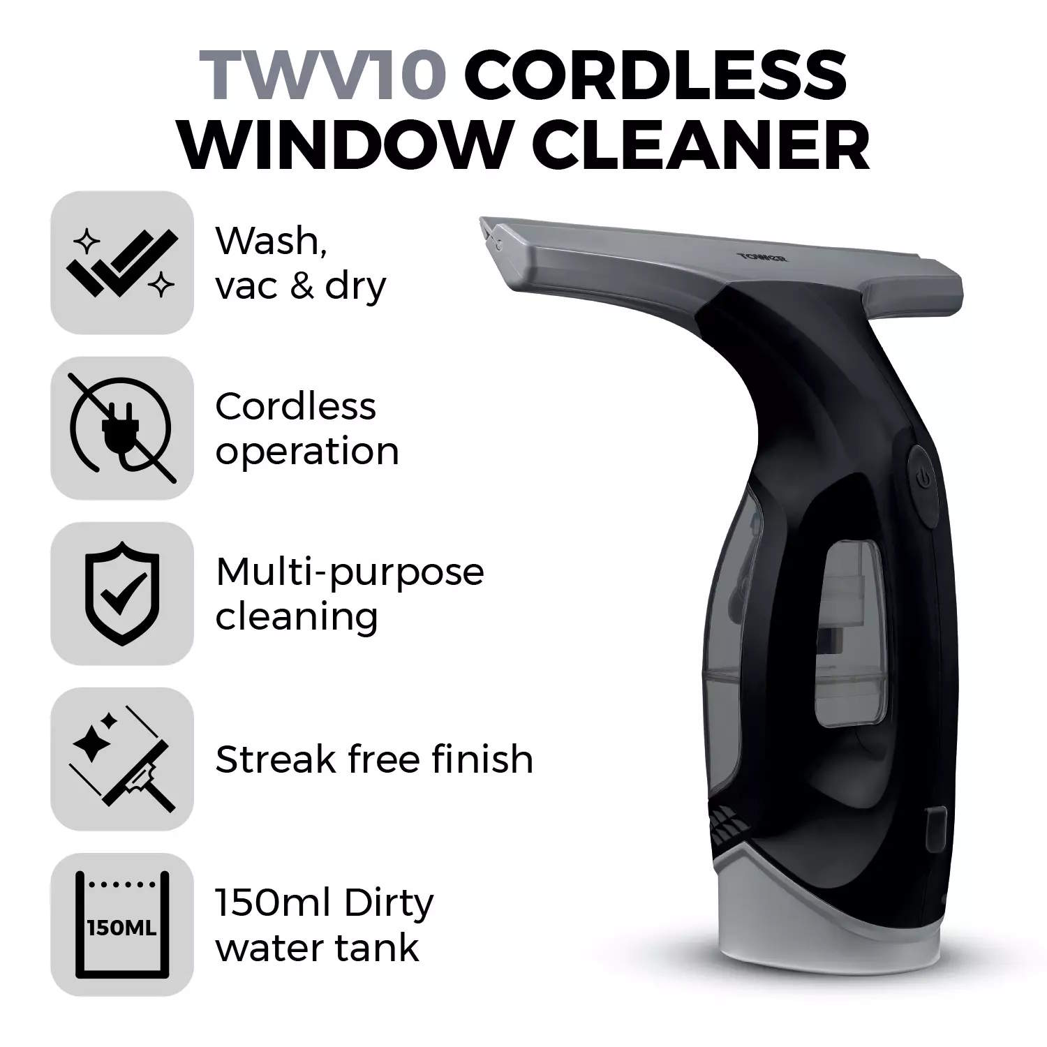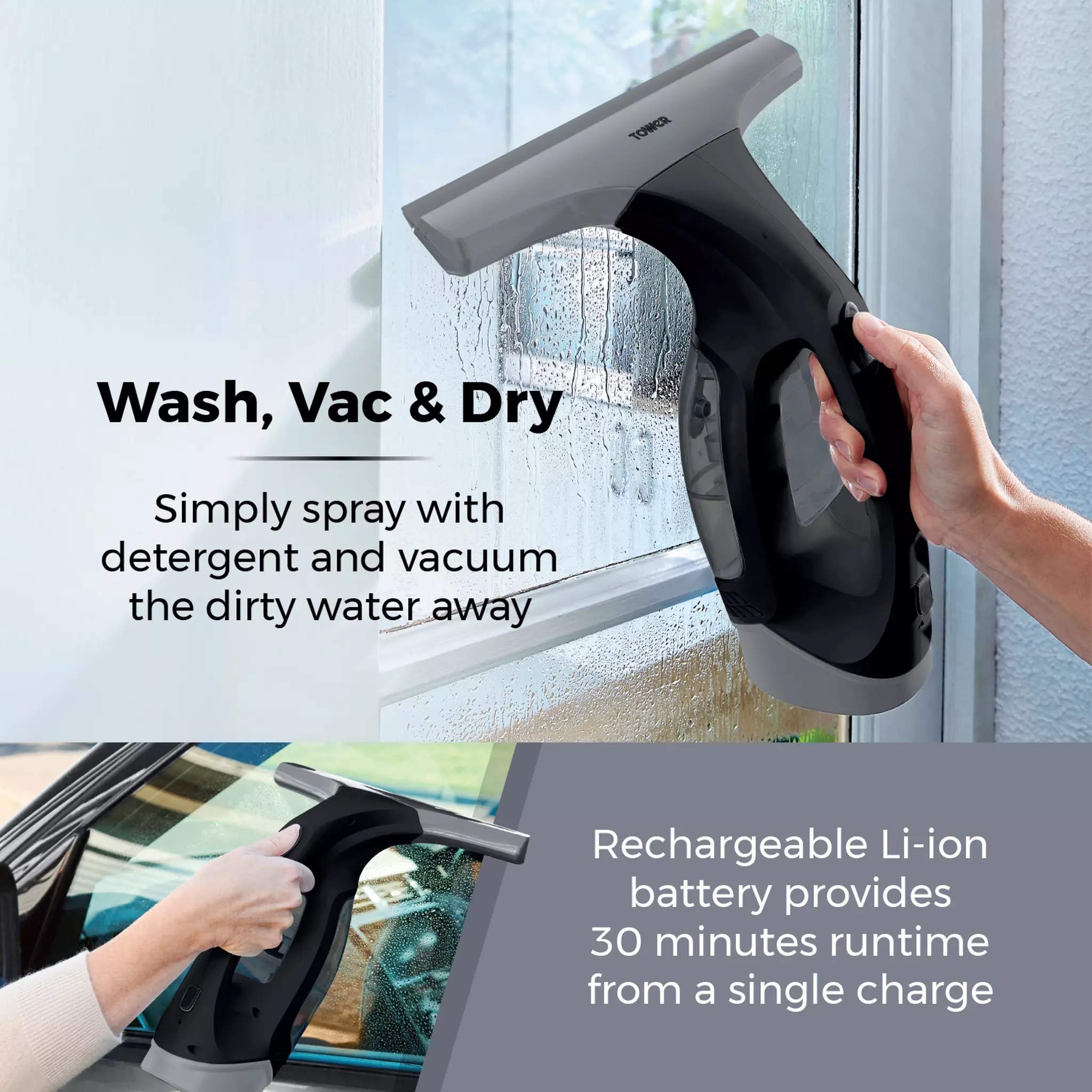 Keep your windows crystal clear and streak free with the Tower TWV10 cordless window vac. Designed to tackle condensation, smudges,and water marks with ease, this handy cordless tool makes cleaning glass surfaces quick and hassle-free which is perfect for use all around the home.