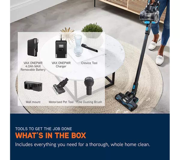 Enjoy up to 45 minutes of cleaning on a single charge, allowing you to cover more ground in one session. The removable ONEPWR MAX lithium-ion battery is compatible with other Vax ONEPWR products for added flexibility. When not in use, the wall-mountable charging dock keeps the vacuum neatly stored and fully charged in just 3 hours.
