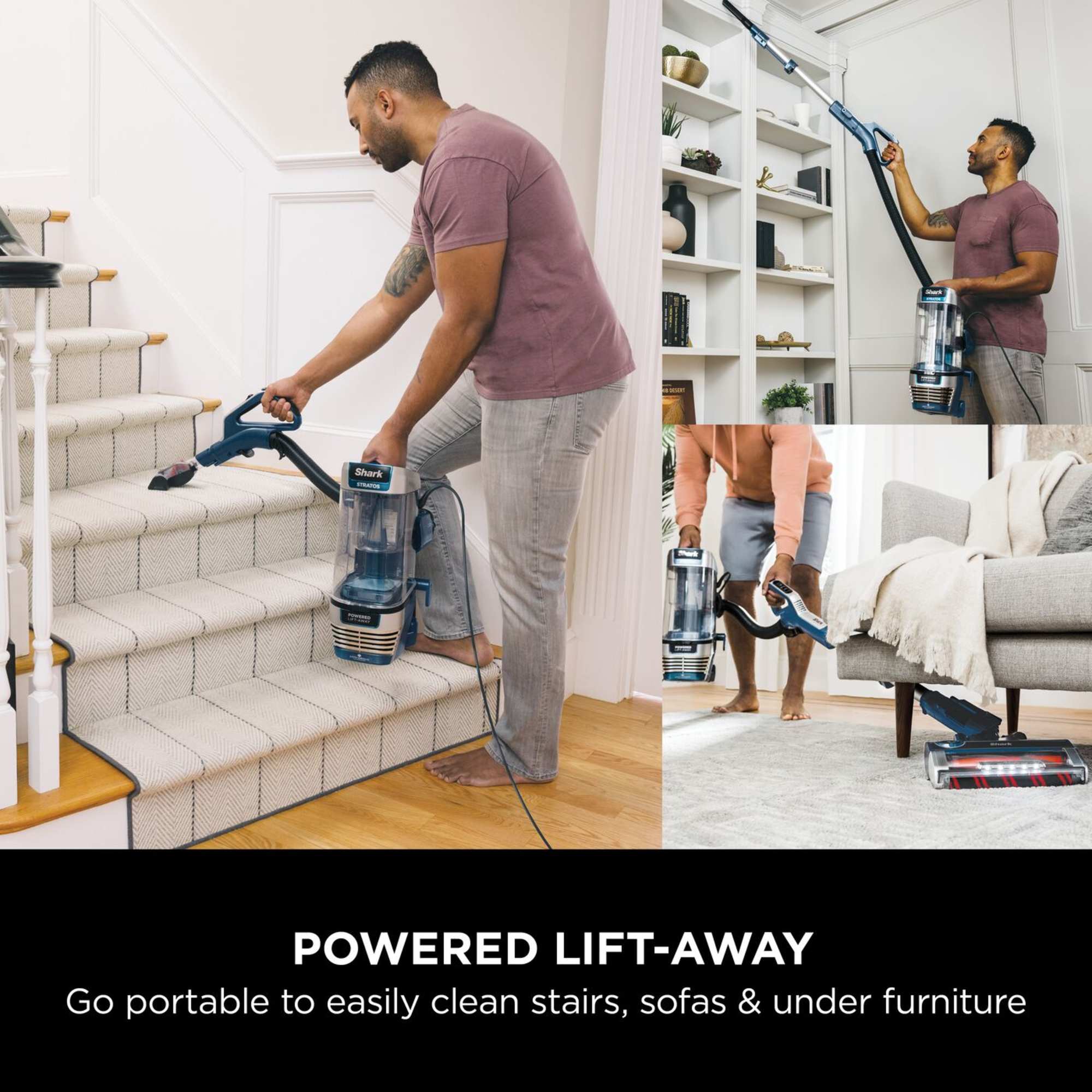 The vacuum offers three floor settings and a long 8-meter power cord for extended reach. Thanks to the Powered Lift-Away feature, you can easily transform the vacuum into a portable cleaner at the touch of a button, making it ideal for cleaning stairs, high areas, and under furniture.