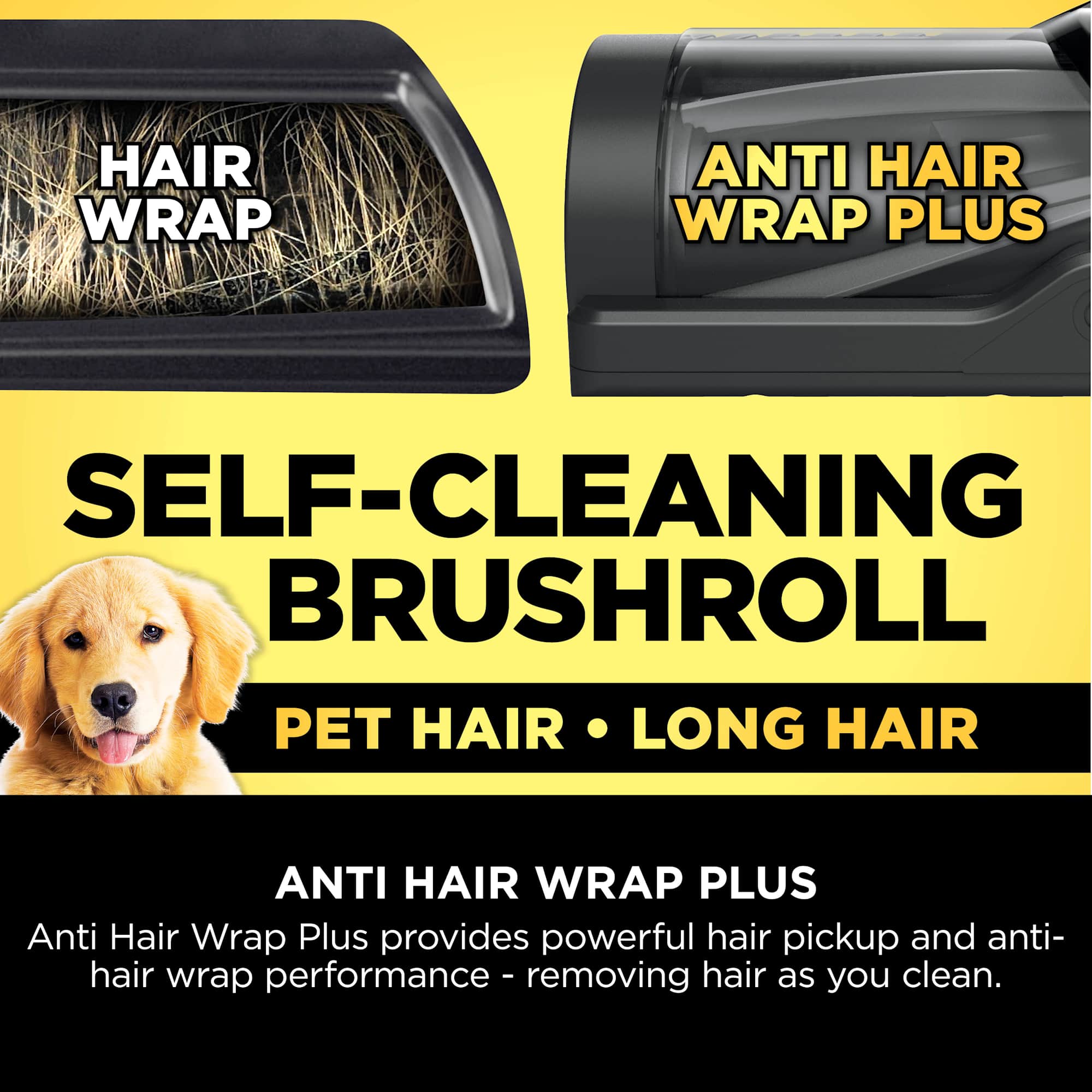 Say goodbye to tangled brush-rolls. Anti Hair Wrap Plus technology actively removes hair from the brush-roll as you clean, making it perfect for homes with pets or long-haired family members.