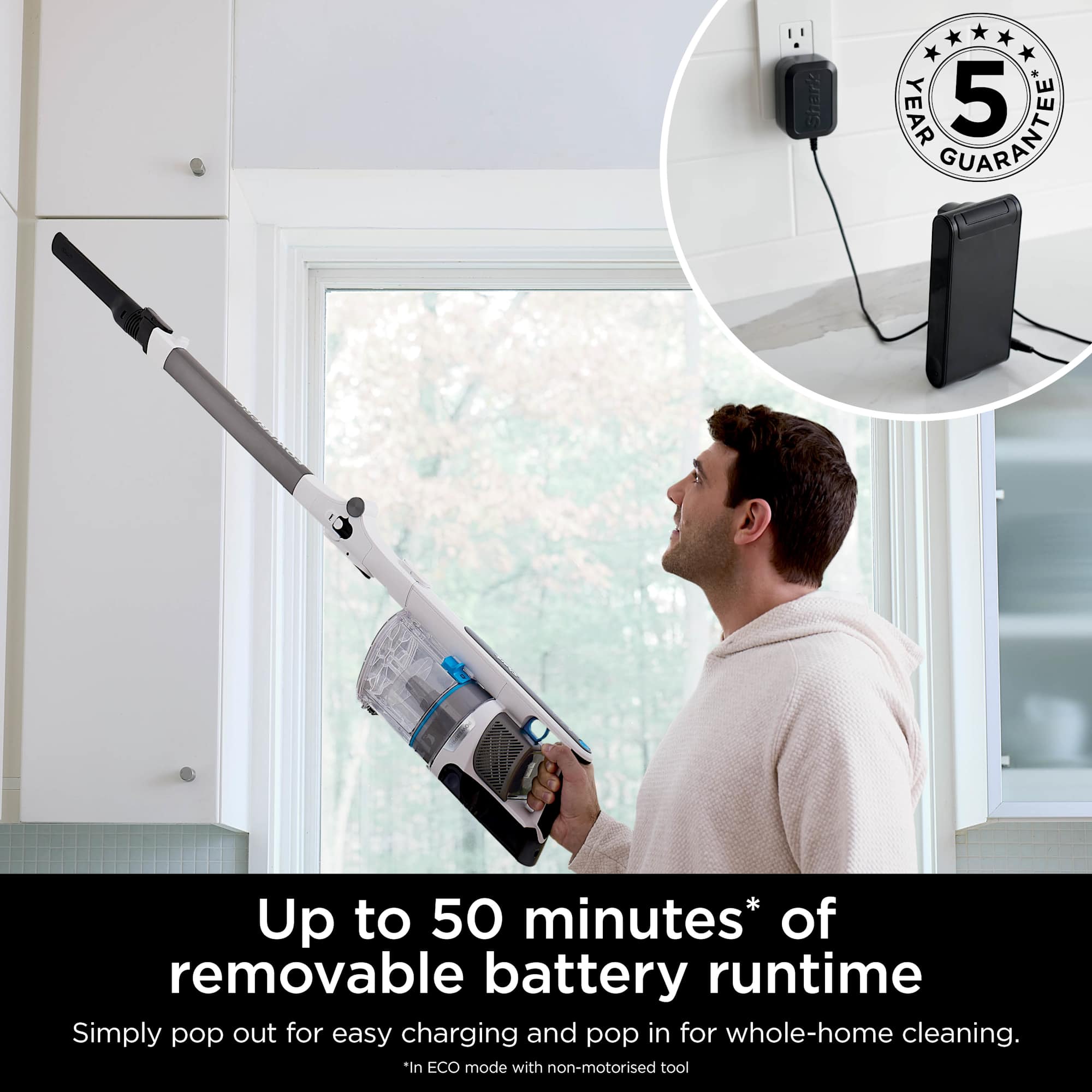 The vacuum converts into a powerful handheld unit for cleaning stairs, furniture, vehicles and other hard to reach areas. Supplied accessories include a crevice tool and upholstery tool to support detailed cleaning tasks. The Anti-Allergen Complete Seal captures and traps over 99.9% of dust and allergens inside the vacuum, supporting a cleaner indoor environment. With up to 50 minutes of run-time on a single charge, the Shark IZ380UKT PowerPro Pet delivers a refined balance of power, control and flexibility for effective, pet-friendly home cleaning.
