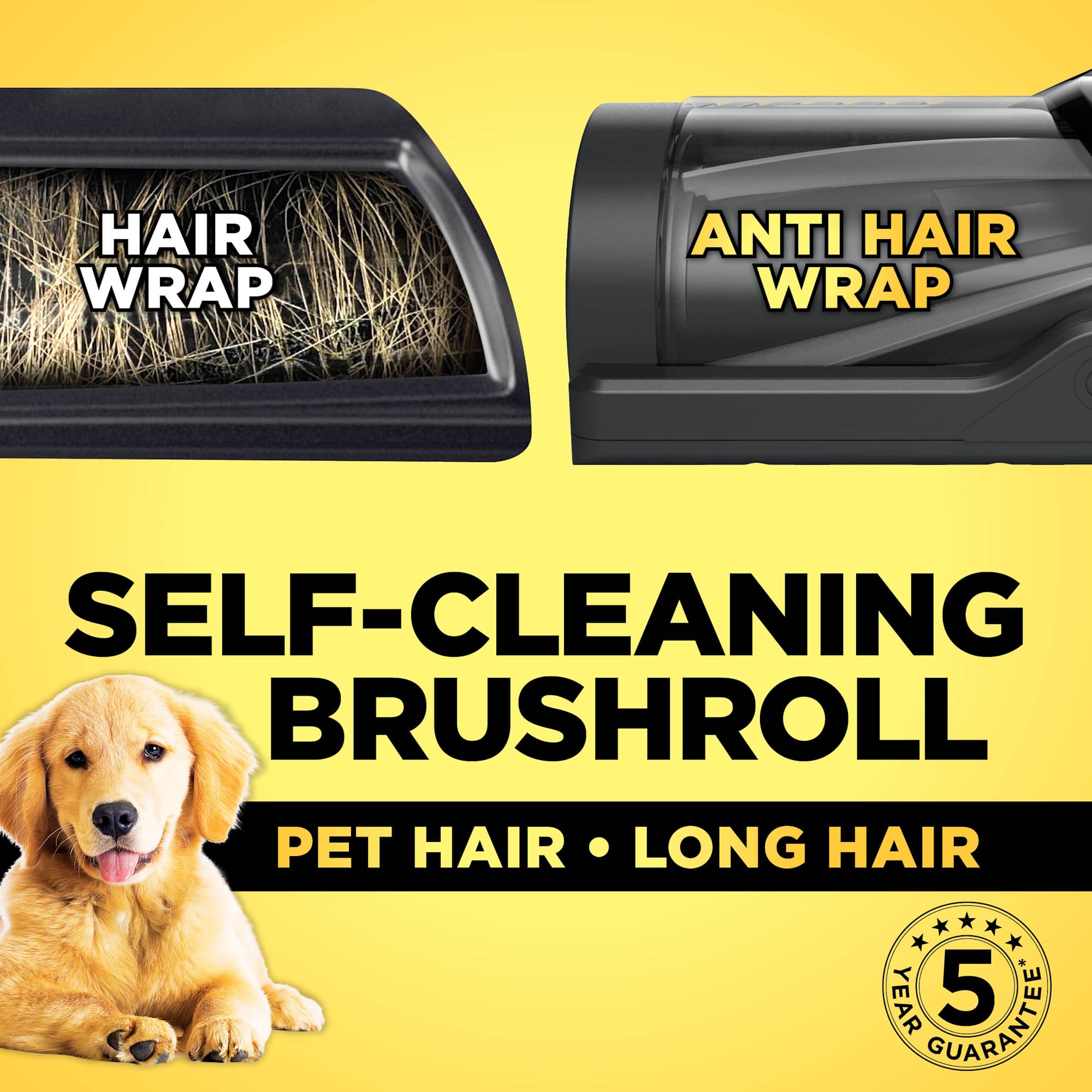 The self-cleaning brush-roll with anti hair wrap technology actively separates and removes long, short and pet hair during cleaning, helping to prevent tangles and maintain consistent performance. The included FurFins pet tool is specifically designed to remove embedded pet hair from upholstery and soft furnishings.
