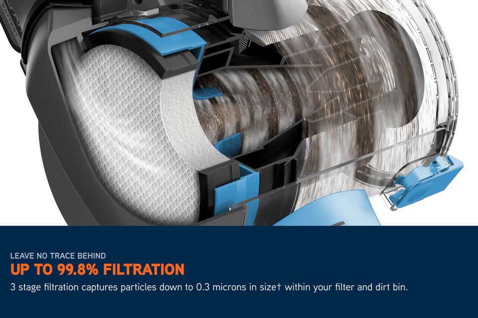 Designed with pet owners in mind, it captures up to 99.8% of particles down to 0.3 microns which is ideal for reducing allergens and dander in the air. With the included stair and crevice tools, you’ve got everything you need for those tricky spots.
