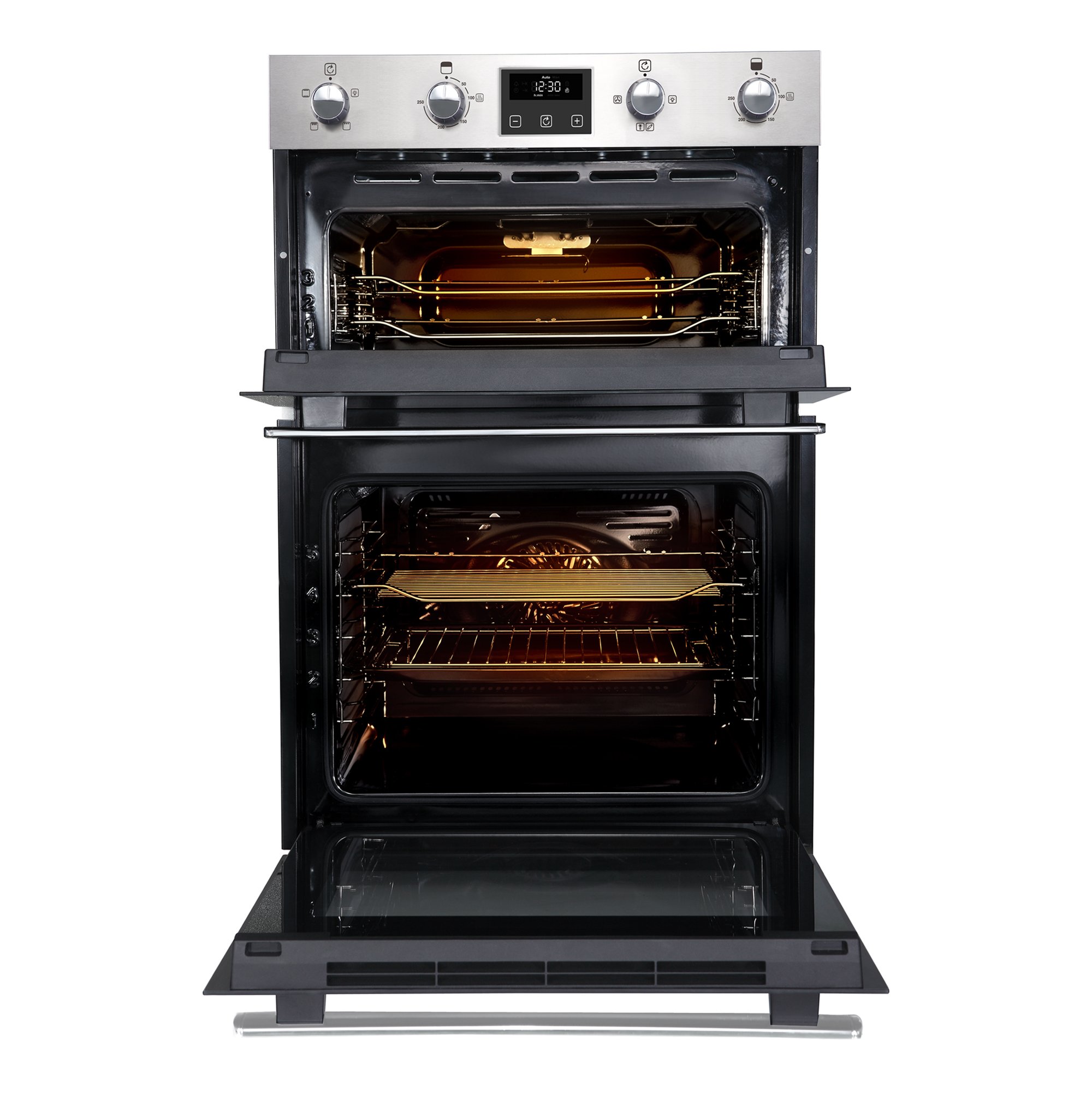 The Belling BI902FP Stainless Steel Built-In Double Oven blends generous capacity with modern features, making it a reliable partner for all your cooking needs. With a sleek stainless steel finish, dual ovens, and thoughtful design touches like soft close doors and a programmable timer, it brings both function and flair to your kitchen setup.