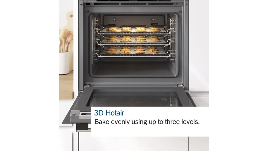 Bosch's MBA5785S6B Series 6 Built-In Double Oven is designed to make cooking easier and more precise. With advanced features like the integrated meatprobe, AutoPilot 30, and Home Connect, this oven ensures perfectly cooked meals with minimal effort. Its sleek design, user-friendly controls, and efficient performance make it a valuable addition to any modern kitchen.