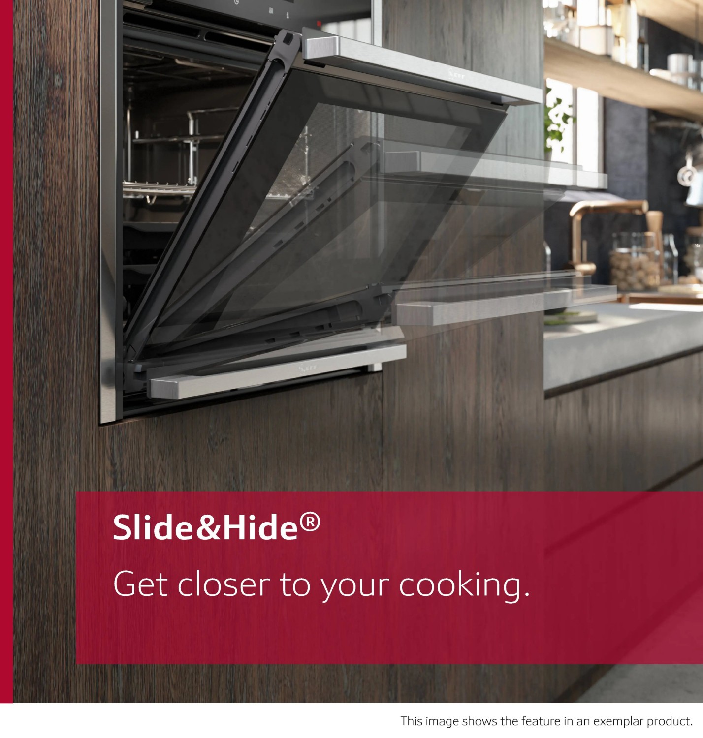- Fully disappearing Slide&Hide oven door with rotating handle