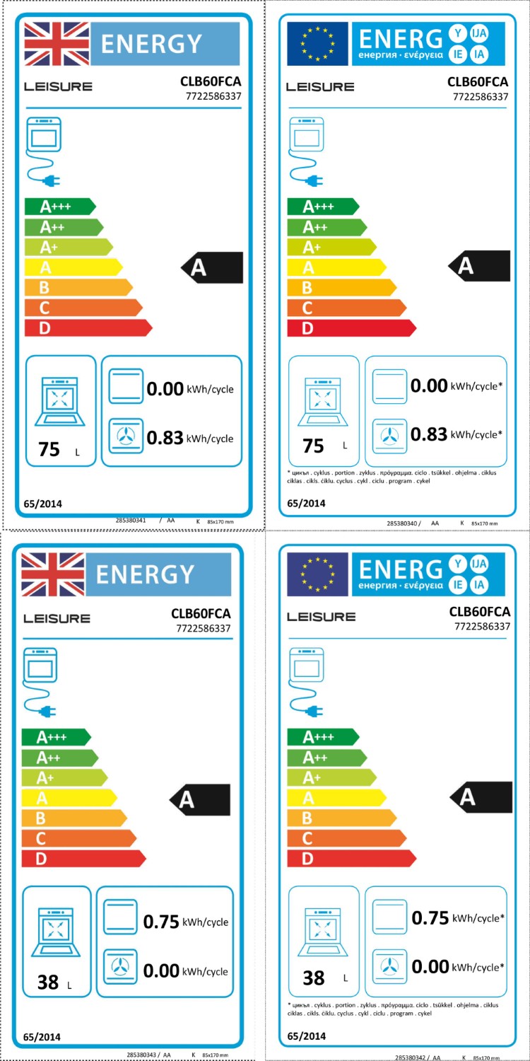 The CLB60FCA comes with two ovens, offering a combined capacity of 113 litres. The main oven has a 75L capacity and is perfect for larger meals, while the top oven provides an additional 38L, ideal for side dishes or smaller meals. Both ovens feature easy to clean enamel interiors and catalytic liners that capture grease and dirt, reducing cleaning time.