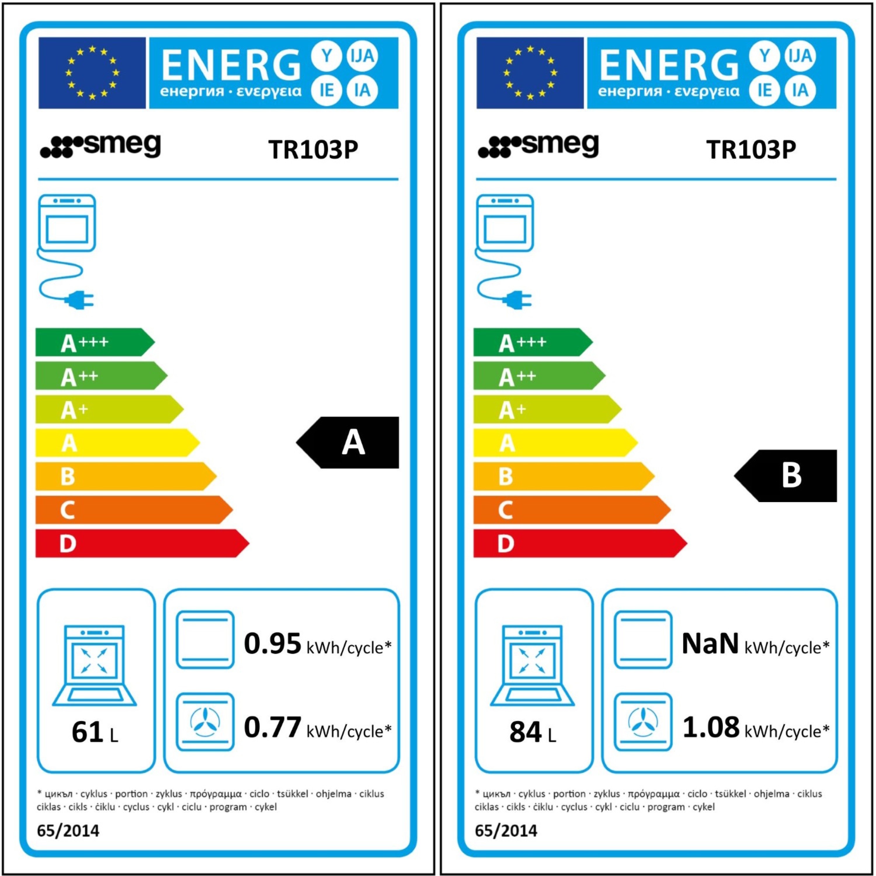 Rated with an energy efficiency class of A for the main oven and B for the second cavity, Smeg's TR103P is designed to deliver high performance while conserving energy. Safety features include gas safety valves, a safety thermostat, and a door alarm. The cooker also supports dual and three phase electrical connections for versatile installation options.
