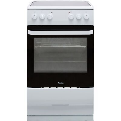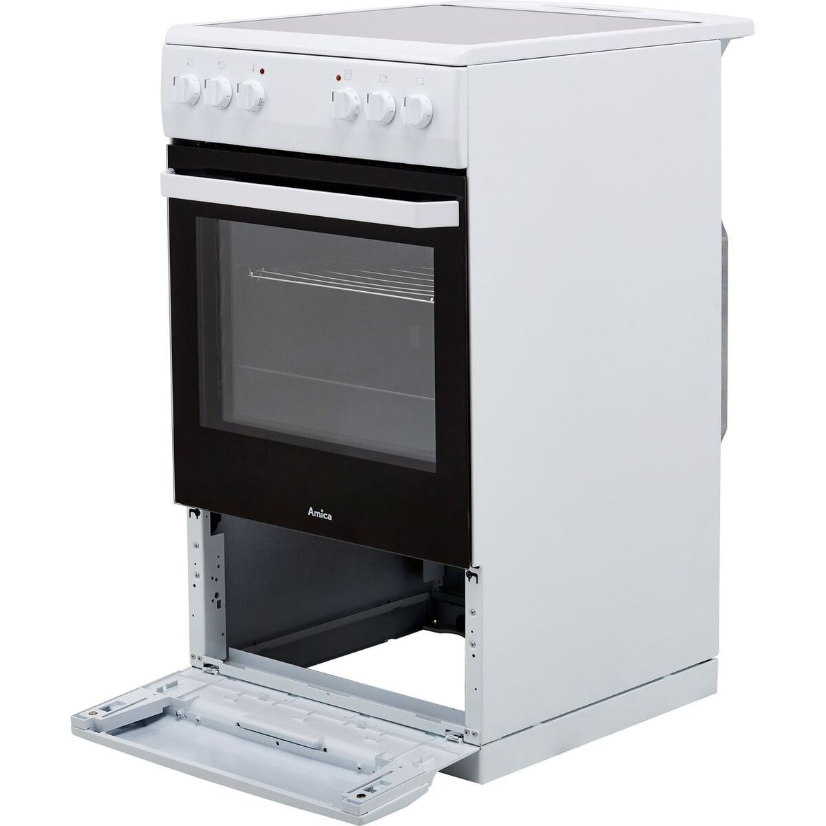 The Amica AFC1530WH is a 50cm freestanding cooker with a single 62L cavity and ceramic 4 zone hob finished in white. Each ceramic hob has 6 power levels with a residual heat indicator and temperature limiter for added safety. The single oven cavity has an integrated grill with variable oven heats and a triple glazed door with removable inner door glass to help with cleaning.