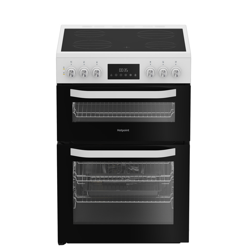 Hotpoint's HDE6VDW double electric cooker meets your cooking needs with advanced features and a surprisingly substantial capacity. User friendly design and modern technology ensure that preparing meals for family and friends is both efficient and enjoyable.