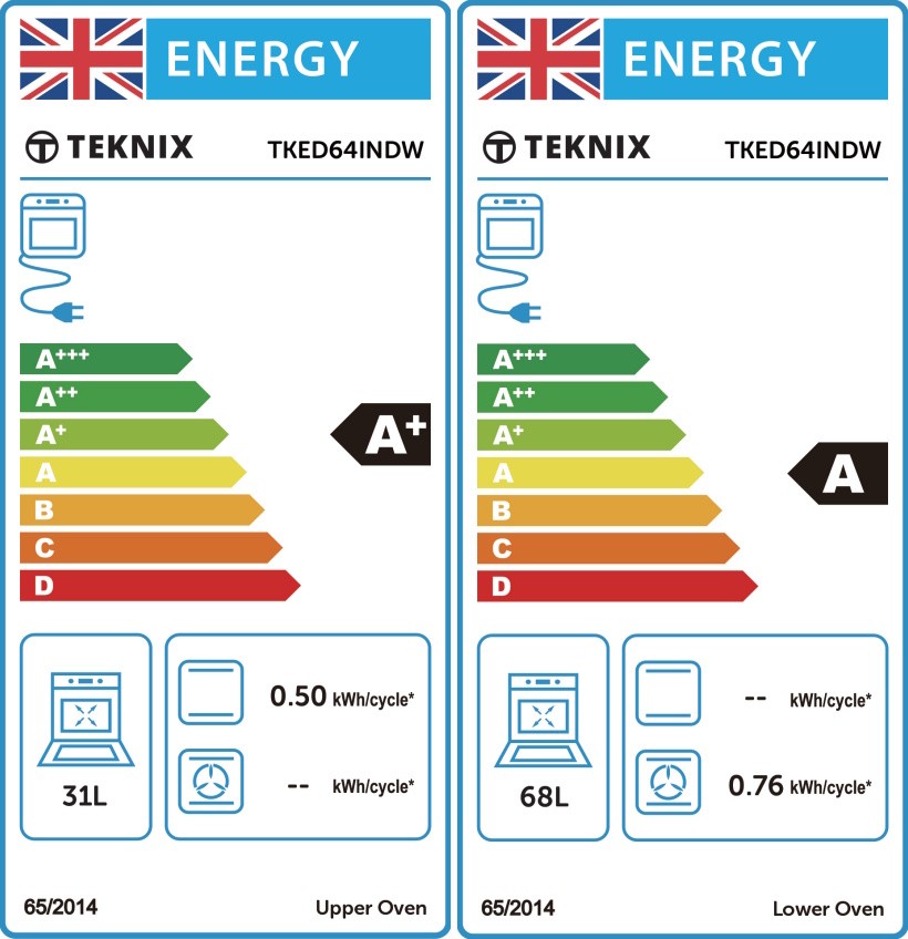 Teknix's TKED64INDW electric cooker combines a 4 zone hob with not 1, but 2 cavities. Use the practical oven controls to perfectly cook more than one different dishes at once.