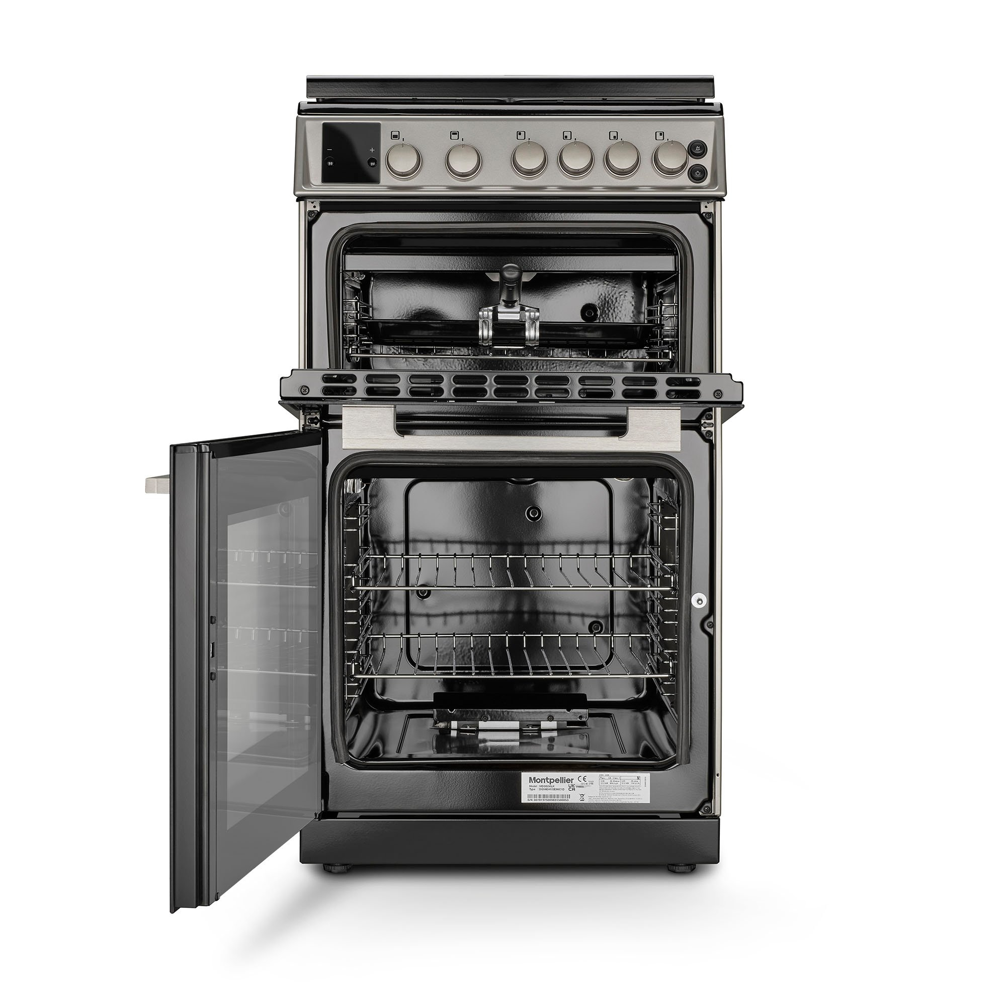 At just 50cm wide, the Montpellier MDOG50LS is ideal for kitchens where space is at a premium. Despite its compact size, it offers an 80L total capacity, split between the main oven and a top conventional oven with a grill.