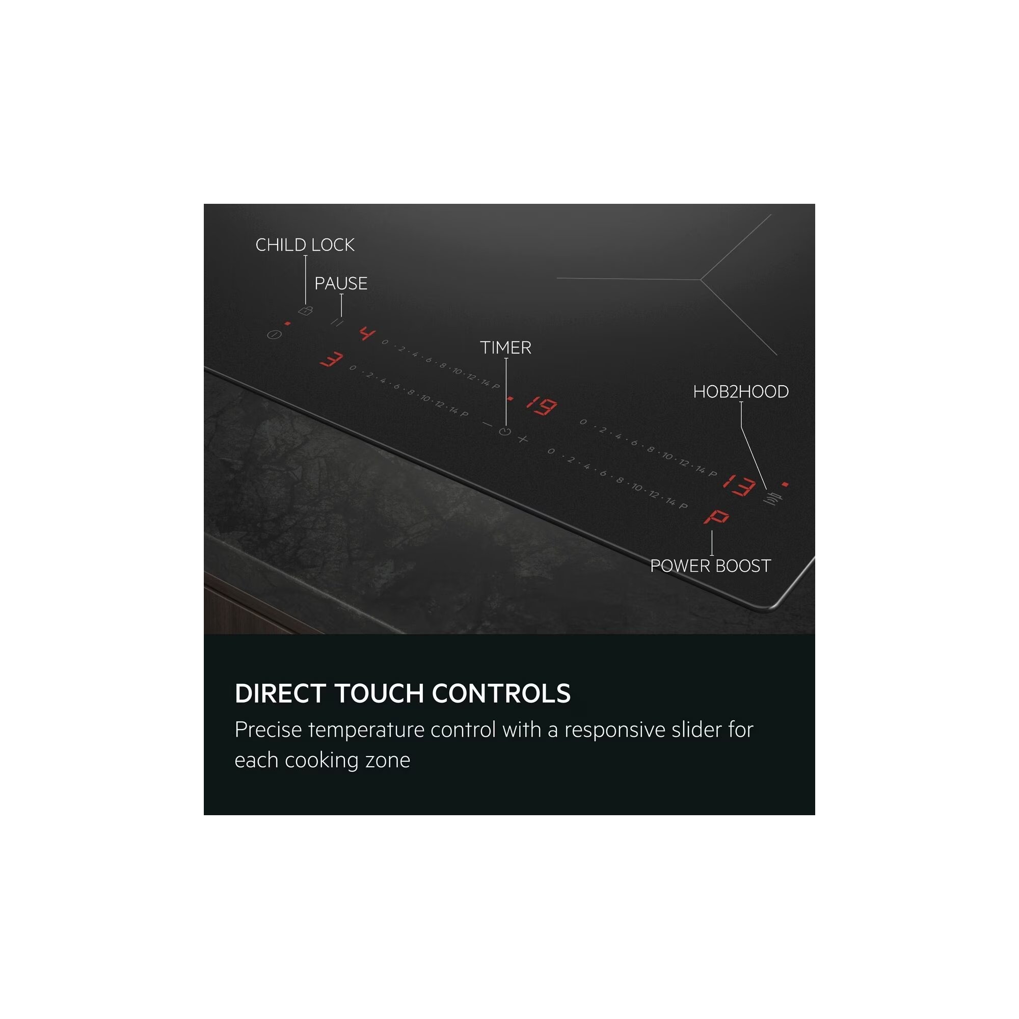 AEG's SO64IA0SCB induction hob blends advanced technology and practicality to provide a powerful and efficient cooking experience. Designed to enhance control and ease of use, this hob is ideal for both aspiring and experienced chefs who value performance and precision in the kitchen.