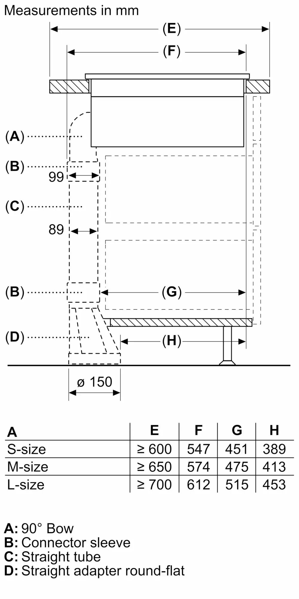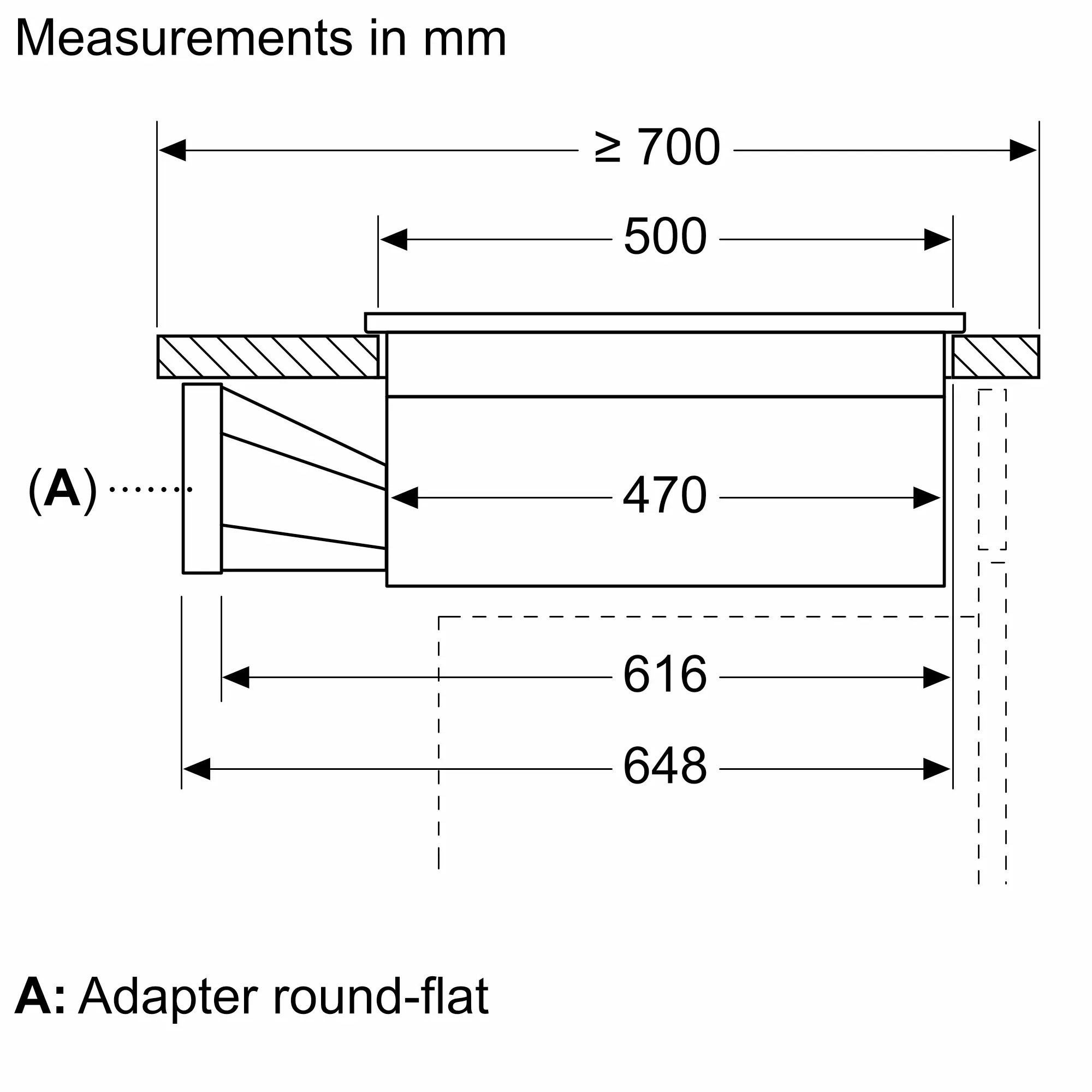 Neff's V58NBS1L0 includes a high performance vented system with a maximum air extraction rate of 500 m³/h, ensuring a clear view while cooking. The Boost function increases this to 622 m³/h for intensive extraction when needed. The integrated hood operates quietly, with a noise level of just 69 dB, thanks to the eco silence drive motor.