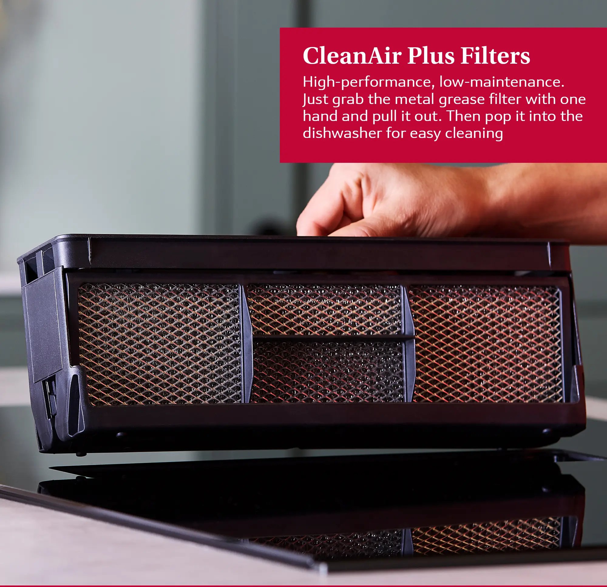The integrated vented hood offers a maximum air extraction rate of 500 m³/h, with a boost position reaching up to 622 m³/h. This ensures that your kitchen remains free of smoke and odours, even during intense cooking sessions. The Automatic Air Sensor adjusts the extraction rate based on the kitchen environment, providing optimal ventilation at all times.