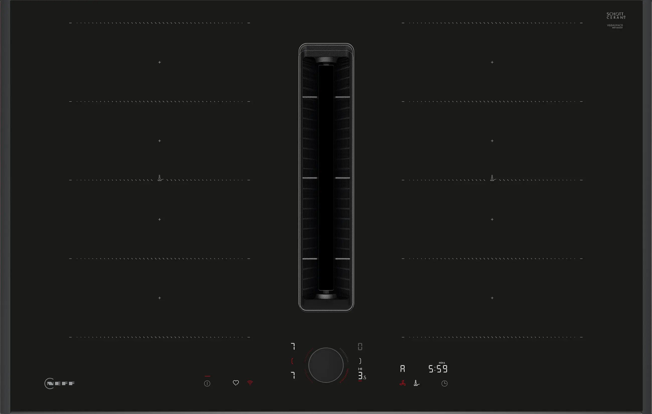 Neff's V68AUX4C0 N90 vented induction hob combines cutting edge technology with well planned and executed design. Ideal for modern kitchens, it offers flexible cooking options, efficient air extraction, and smart connectivity, ensuring an unbeatable cooking experience.
