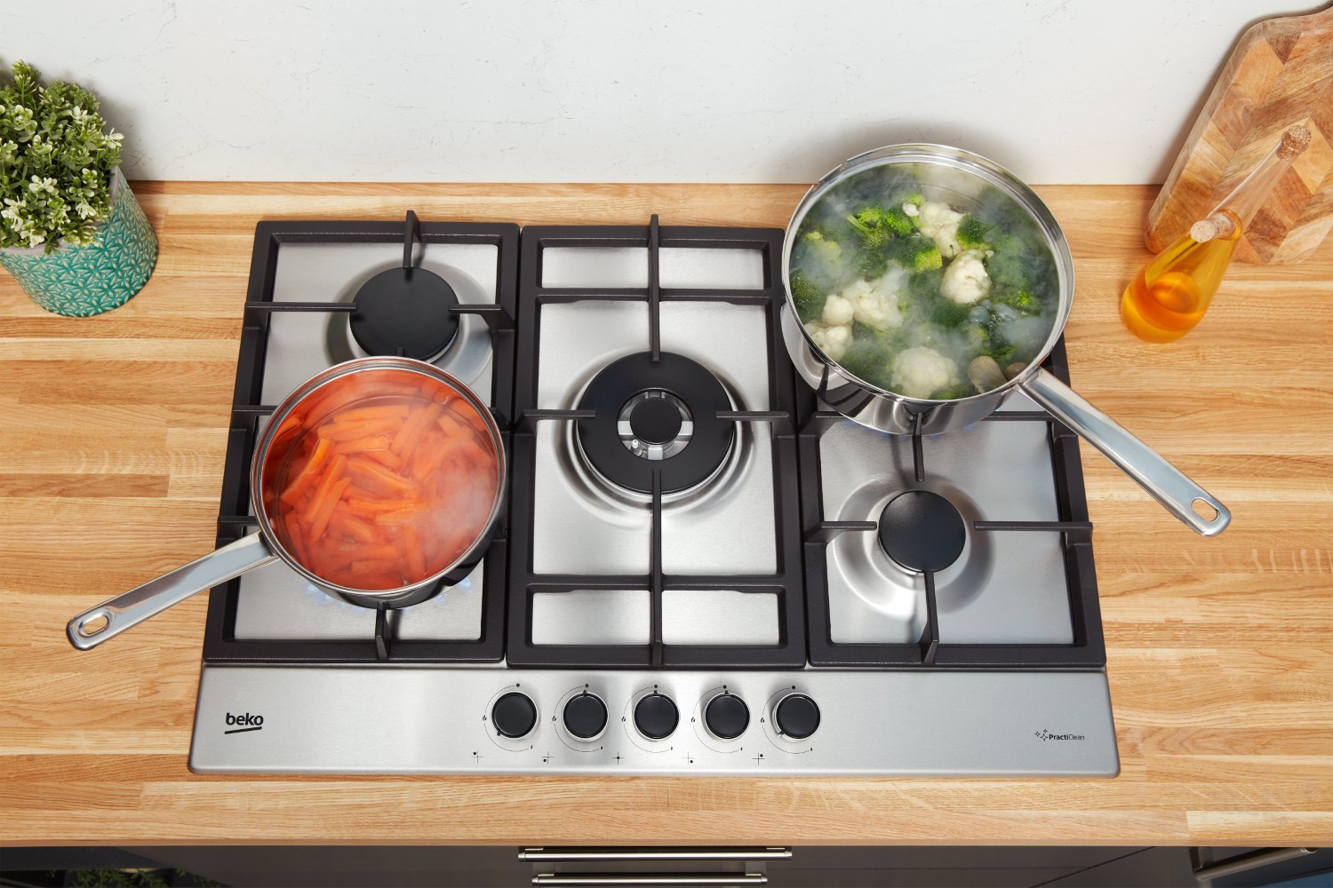 Beko's HIAW75225SXE gas hob is for flexible everyday cooking, built with 5 burners including a high powered double ring wok option for crisp, deep, and even stir frying feasts. It pairs this efficient burner performance with plenty of practical, convenient features like auto ignition, durable cast iron pan supports, and gas flame safety, all finished in a hard wearing brushed steel look.