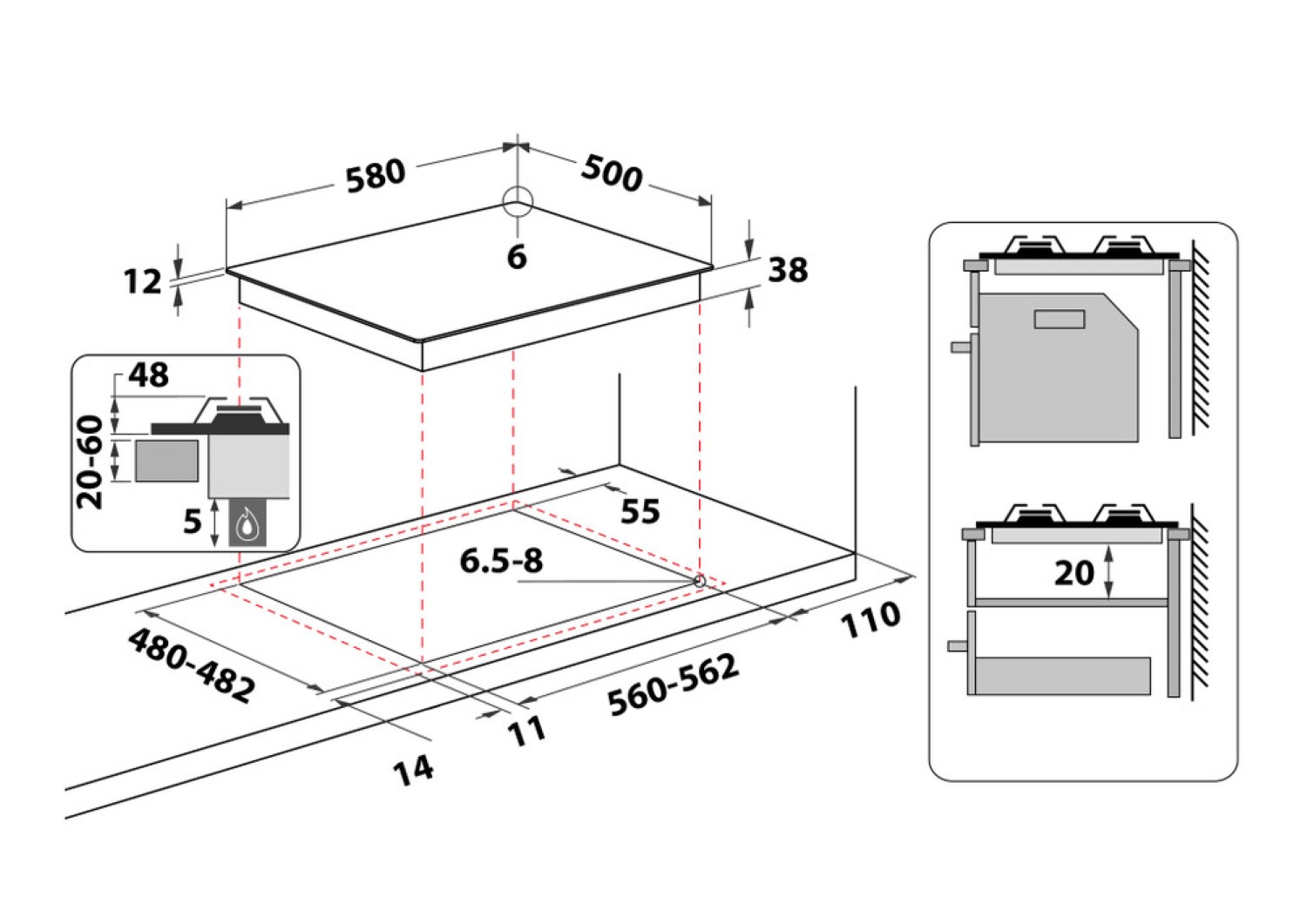 Designed with convenience in mind, this hob includes an automatic ignition system for easy start up, eliminating the need for matches or lighters. The lateral control panel is easily accessible, allowing you to adjust flame levels without any hassle.
