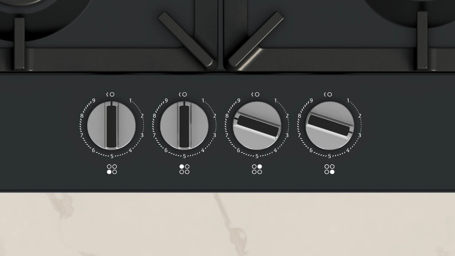 Equipped with four burners, this gas hob offers a range of power options to suit different cooking needs. It includes a high-speed burner, two standard burners, and an economy burner, with power outputs ranging from 1.0 kW to 3.0 kW. FlameSelect controls give 9 precise heat settings, allowing you to achieve the perfect cooking environment for any dish.