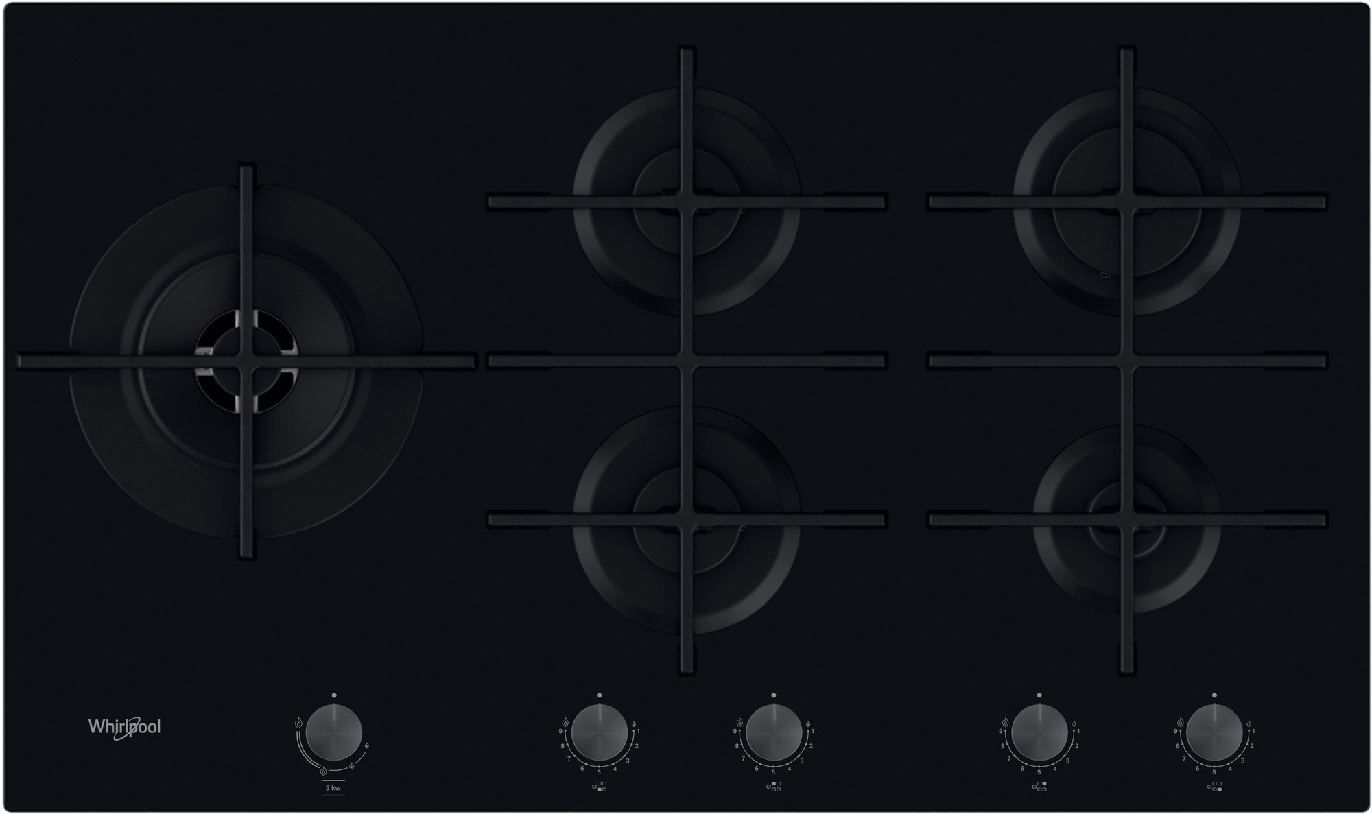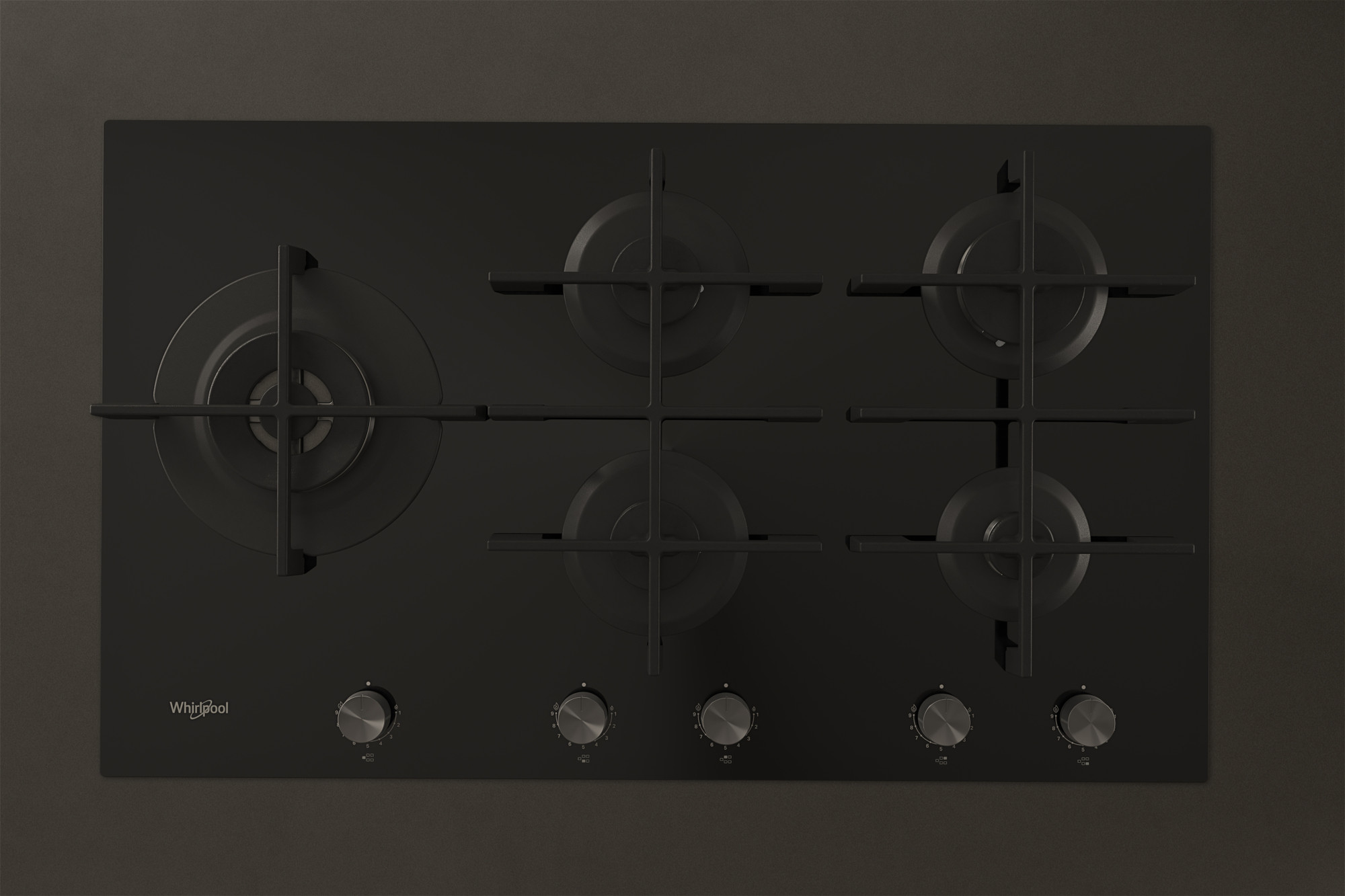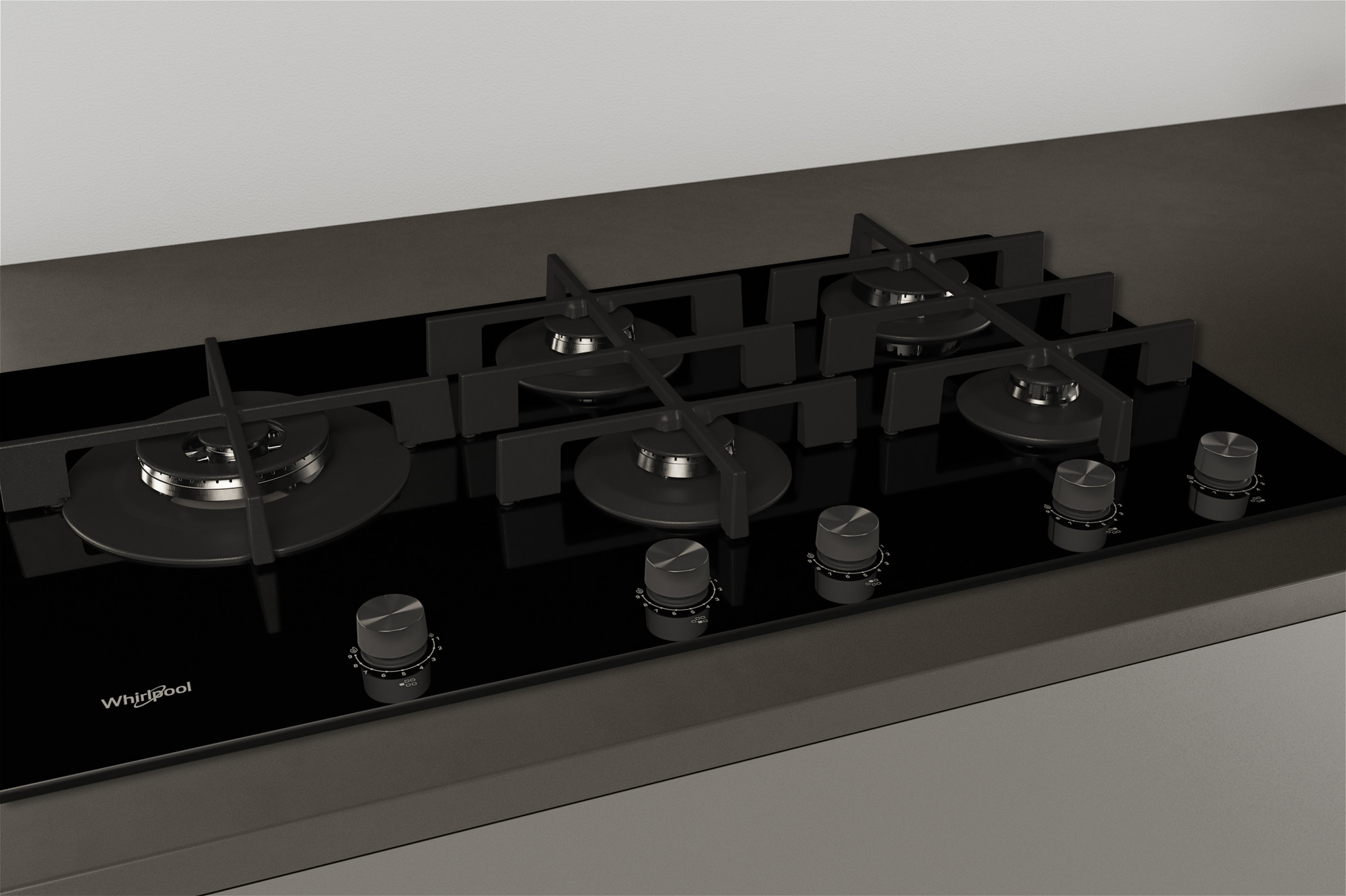 Whirlpool's GOWL958NB gas on glass hob combines style and functionality, an excellent addition to any modern kitchen. Its classic black design and advanced features make this hob versatile and efficient.