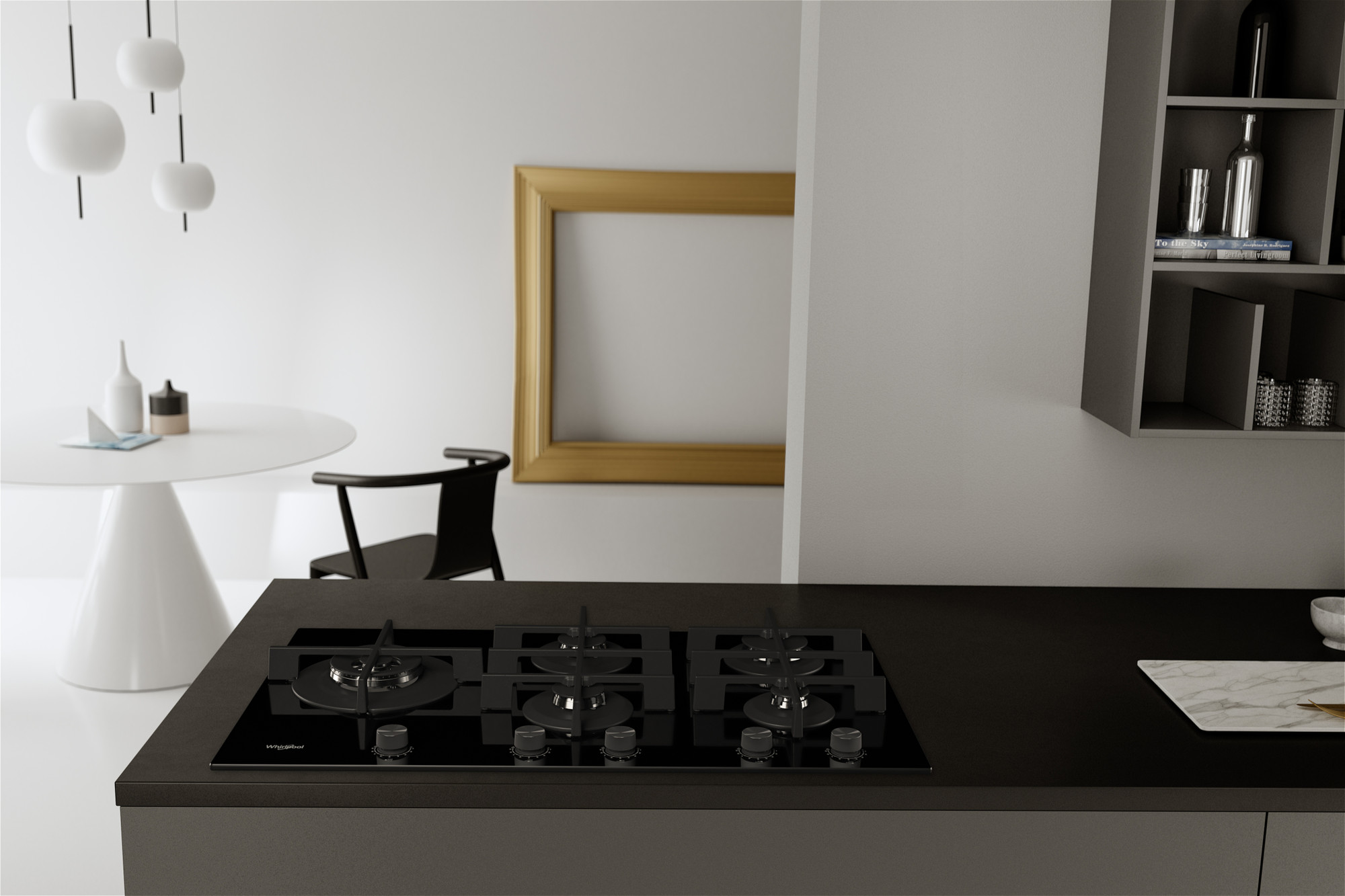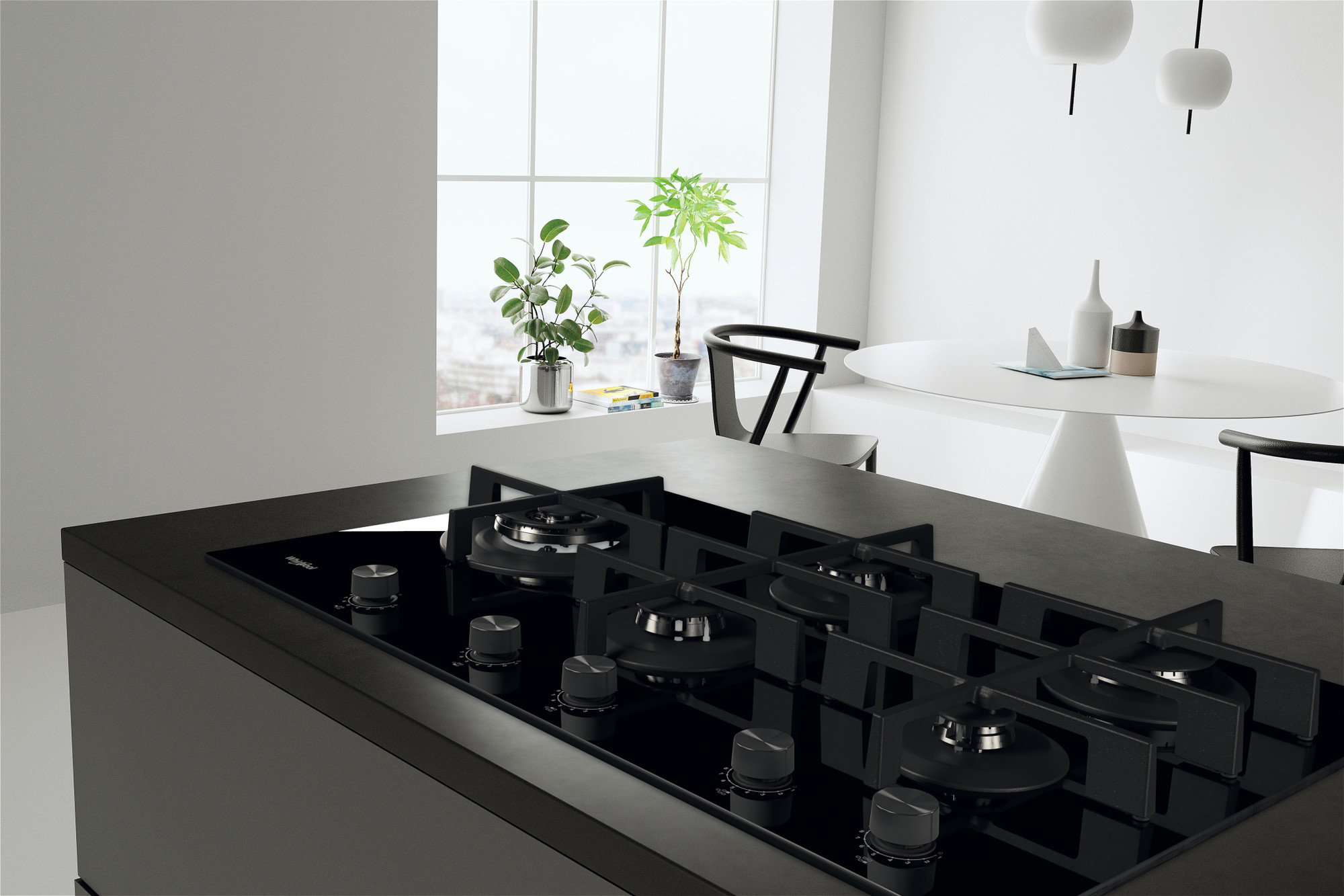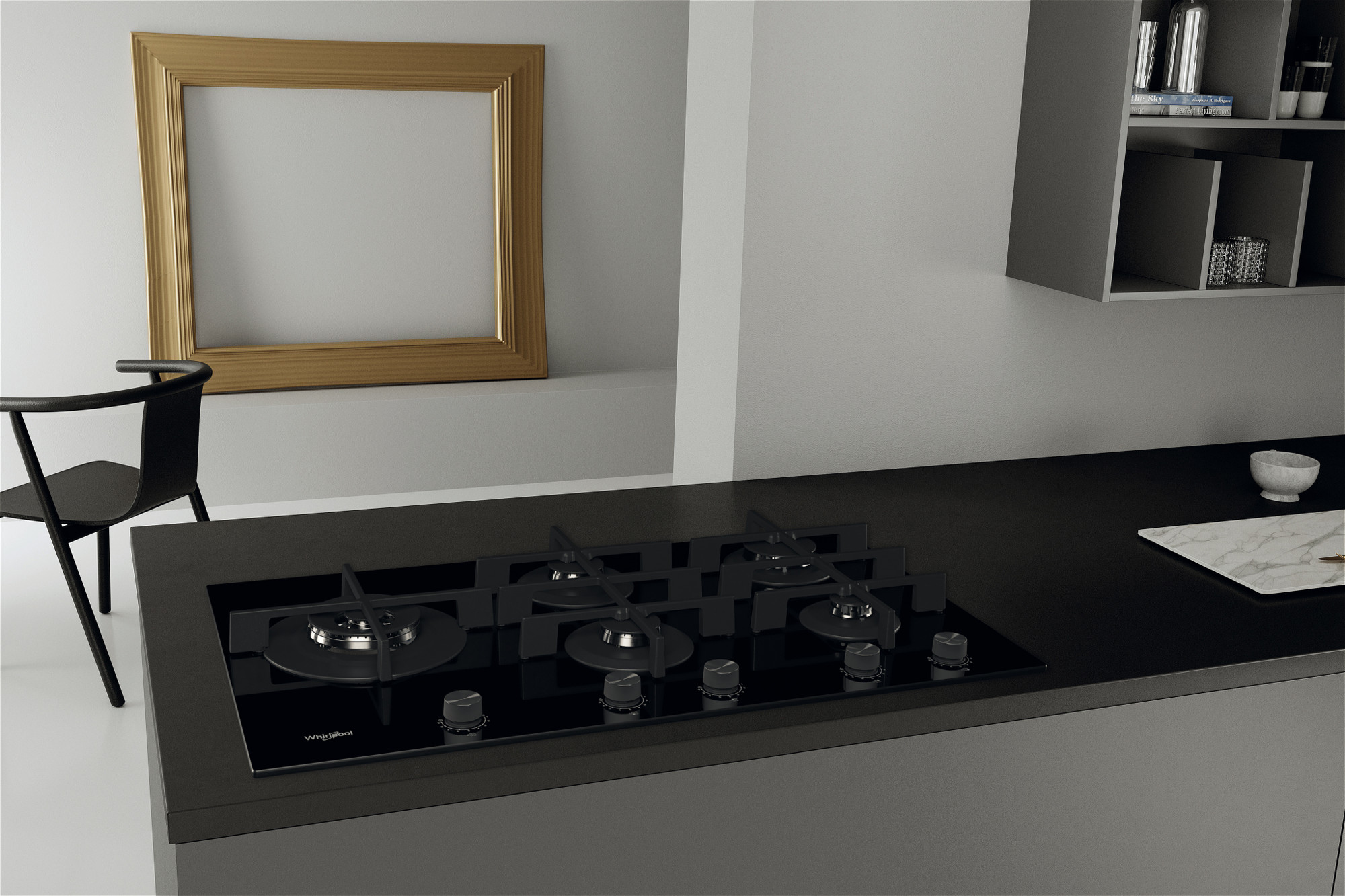 Whirlpool's GOWL958NB gas on glass hob combines style and functionality, an excellent addition to any modern kitchen. Its classic black design and advanced features make this hob versatile and efficient.