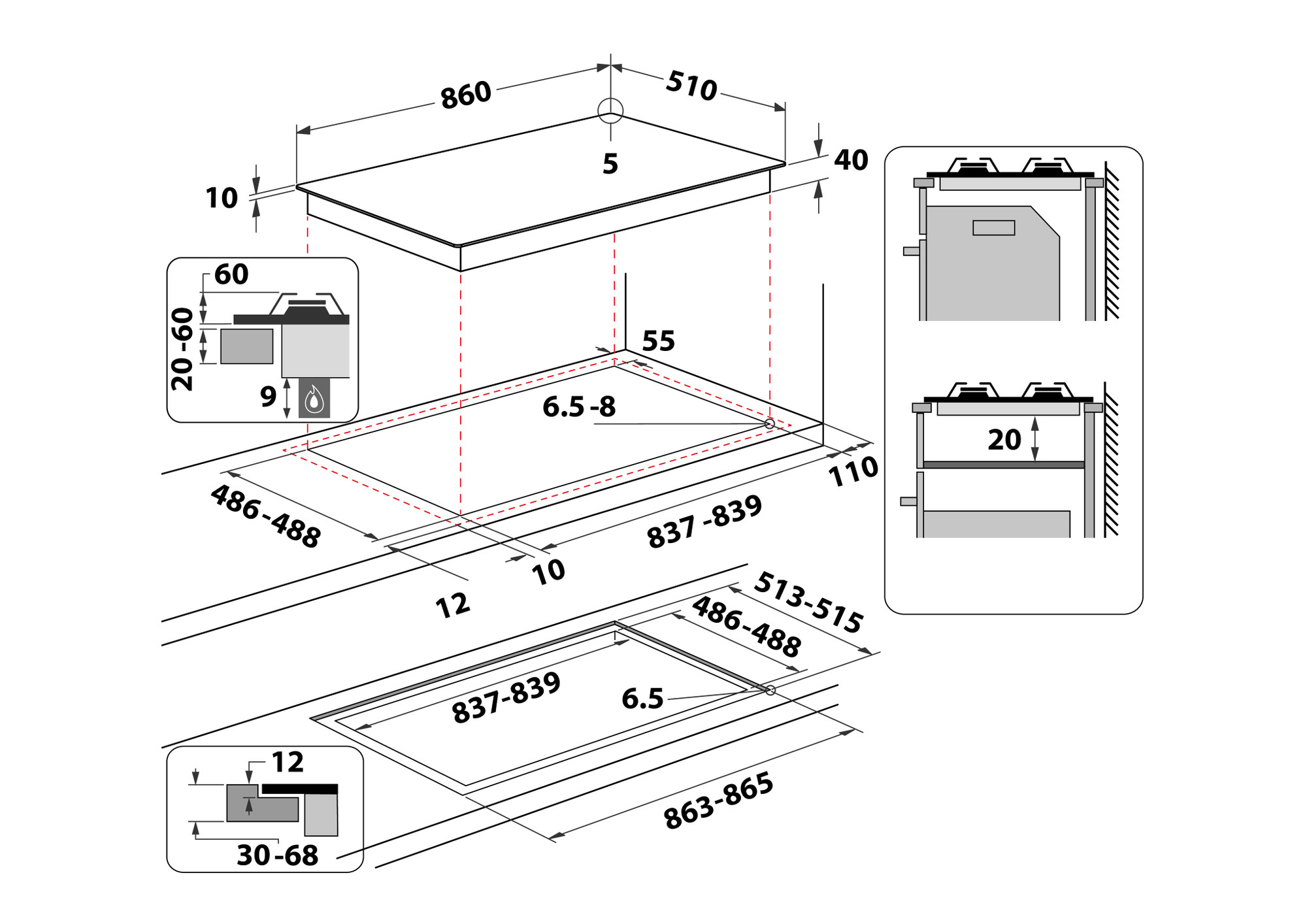 | Hob Features: | Cast Iron Pan Supports, Flame Fail Safety Device, Gas on Glass, Hard-Wired, Wok Burner |
