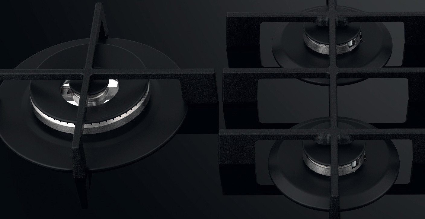 The GOWL958NB hob robust cast iron supports that enhance its appearance and functionality, offering maximum, long lasting stability when using pots and pans. Full width grids allow for easy movement of cookware across the burners, welcome to seamless and efficient kitchen multitasking.