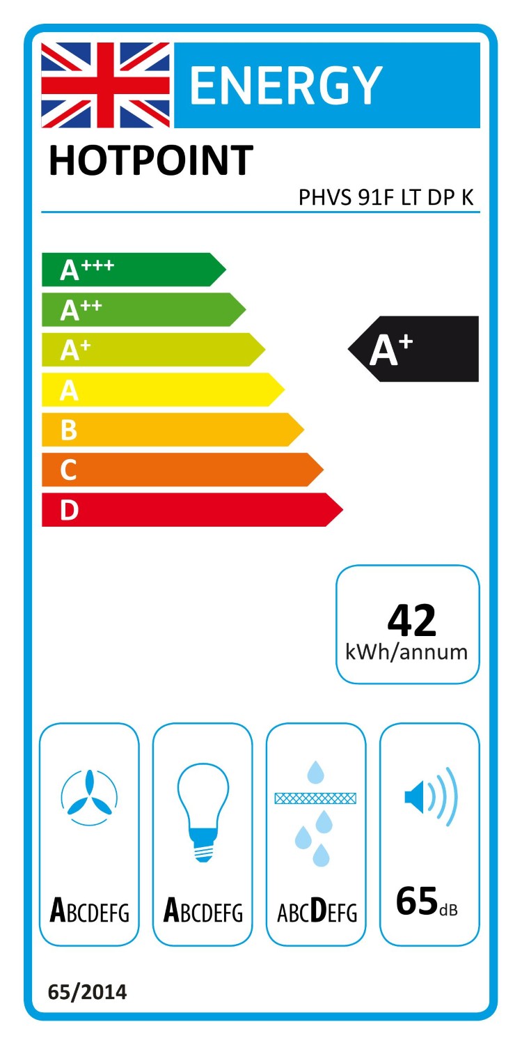 The PHVS91FLTDPK is equipped with dishwashable aluminium grease filters, making maintenance simple and convenient. Its energy efficiency class of A+ ensures that it operates economically, with a total annual energy consumption of just 41.8 kWh. The fluid dynamic efficiency class of A further highlights its performance capabilities.
