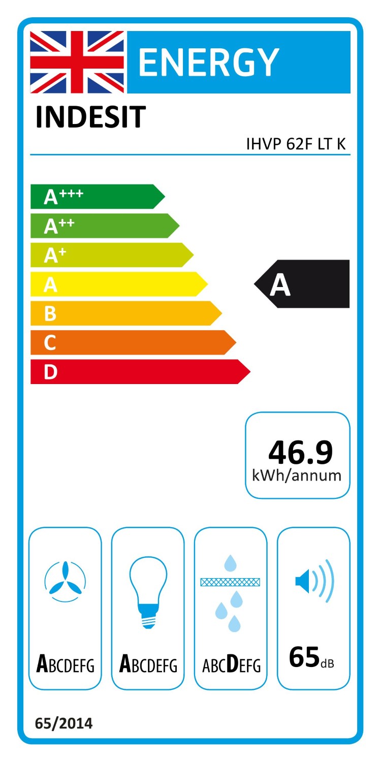 The IHVP62FLTK offers four adjustable speed settings, allowing you to tailor the extraction power to your cooking needs. Whether you're simmering or frying, the hood efficiently tackles unwanted odours and grease. It boasts an impressive energy efficiency class A, with a total annual energy consumption of just 46.9 kWh, making it both powerful and economical.