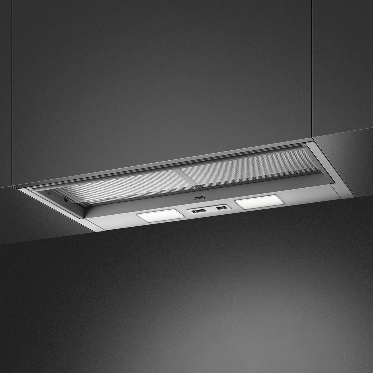 The Smeg KSED95XE cooker hood features a slider control setting for easy operation. It includes three aluminium anti-grease filters that are simple to remove and clean, ensuring optimal performance. The hood also comes with a non-return valve to prevent backflow of air, maintaining a clean and efficient extraction process.